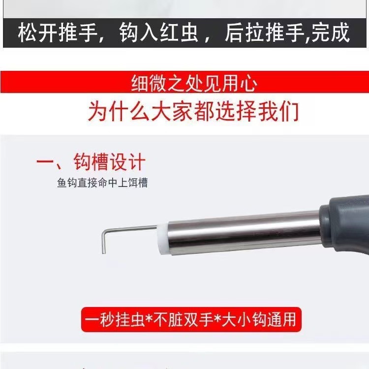 dispositivo de alimentación de cebo de gusano rojo dispositivo de alimentación de cebo de gusano de tierra de acero inoxidable con imán de control de cantidad de gusano rojo clip de banda de goma gancho de alimentación de agrupador rápido