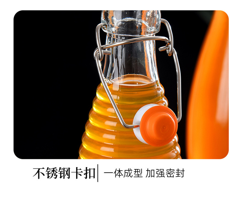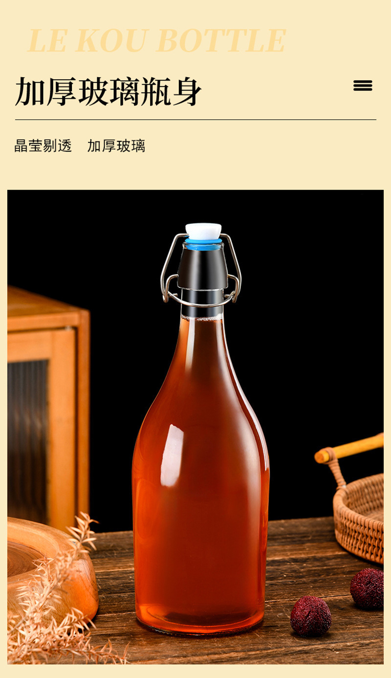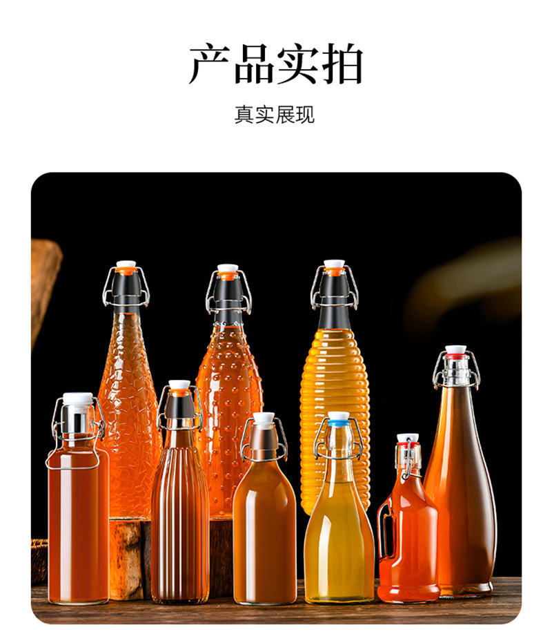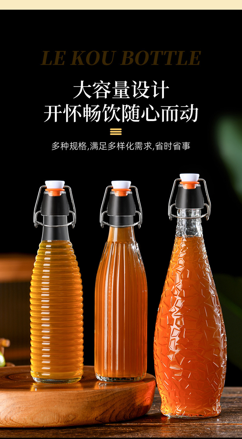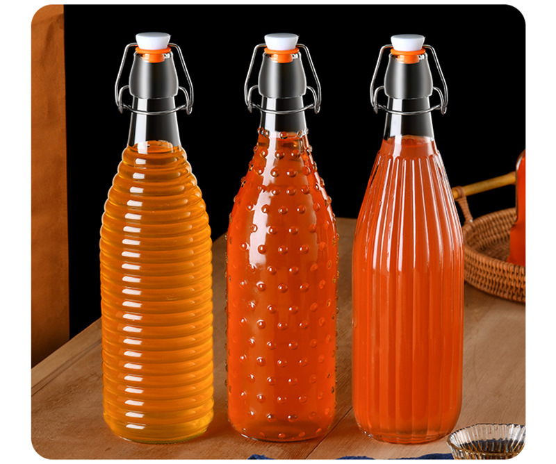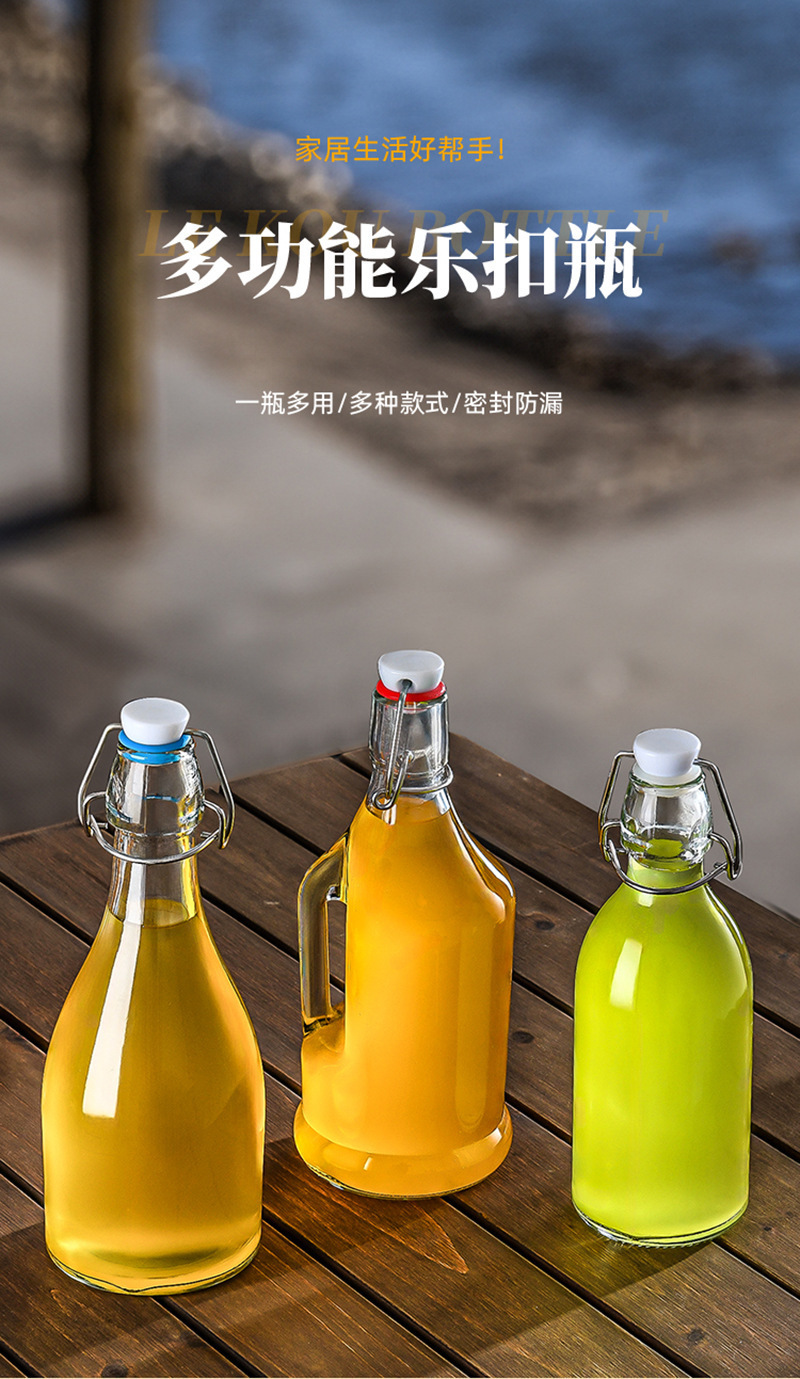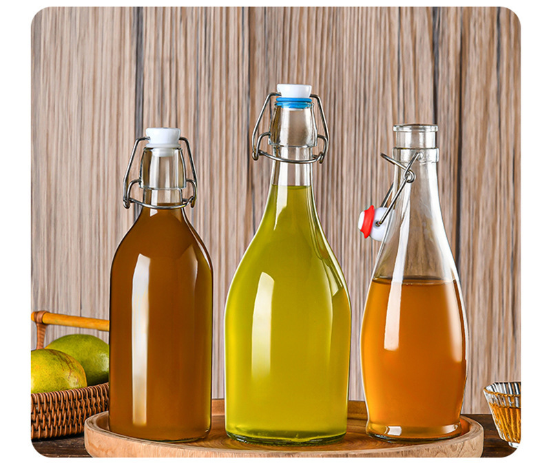 Botella de bebida de vino de fruta transparente botella de enzima de sellado botella de leche botella de jugo botella de aceite doméstica botella de vidrio de sellado de presión