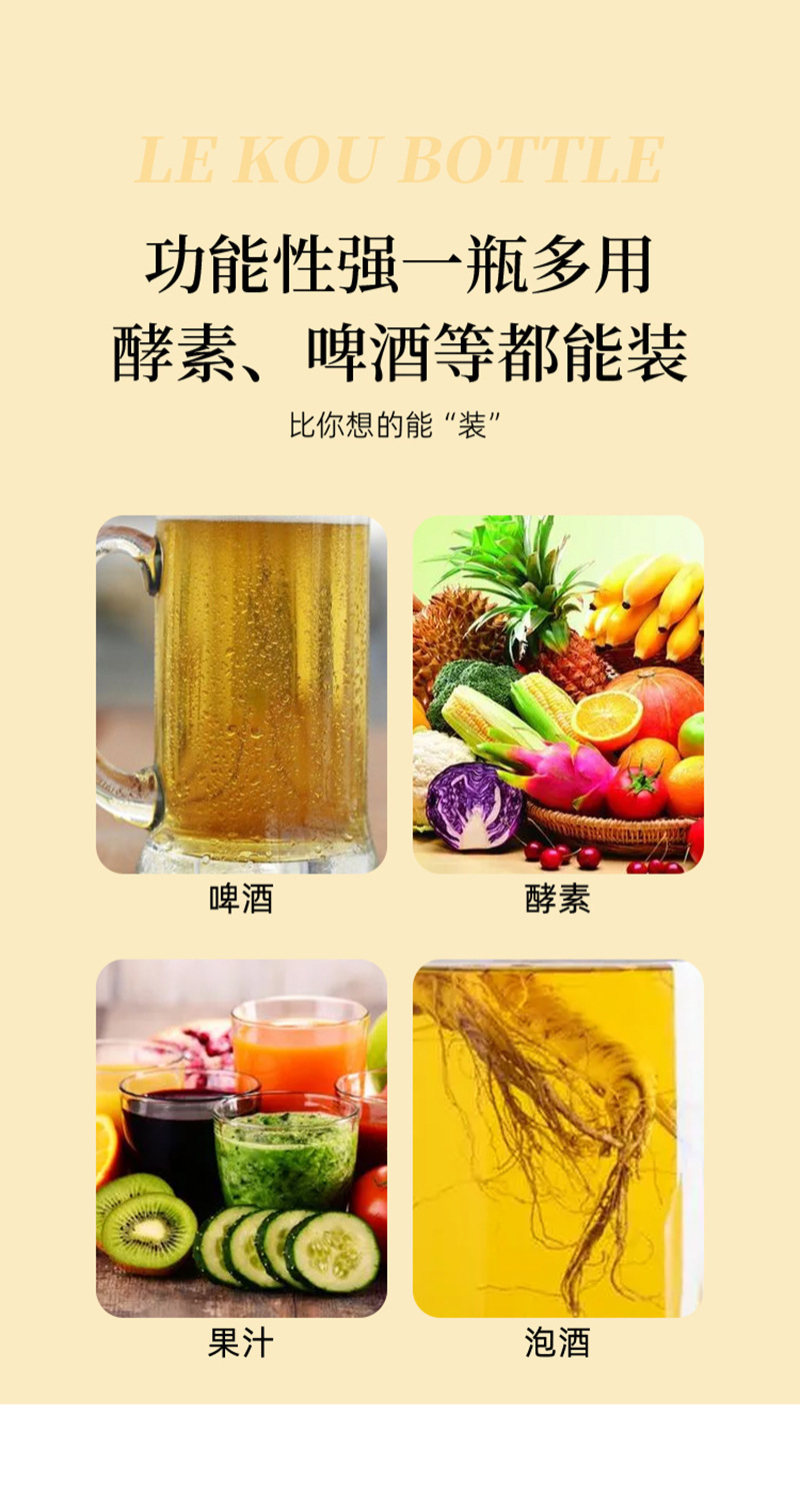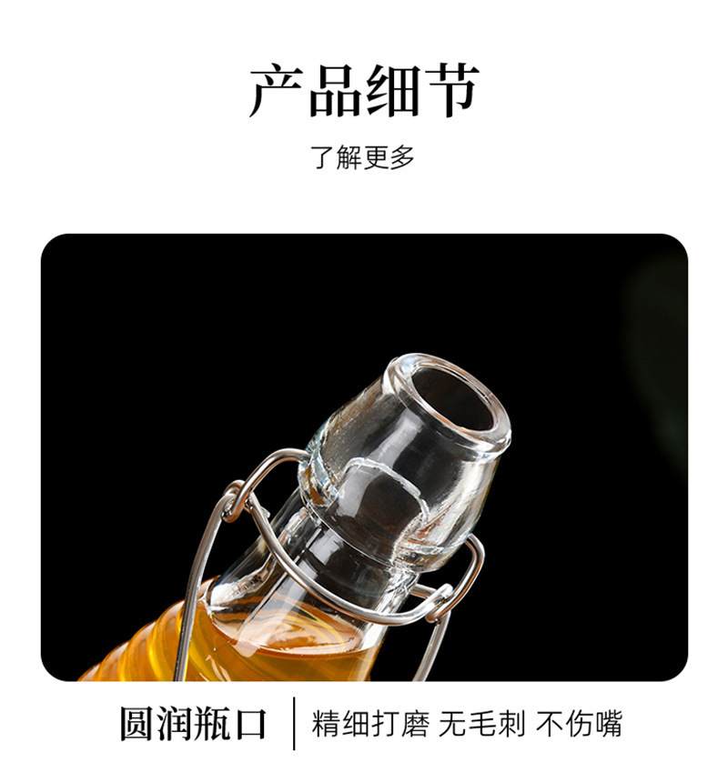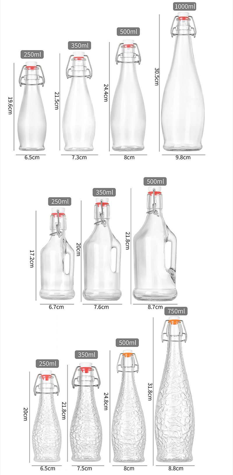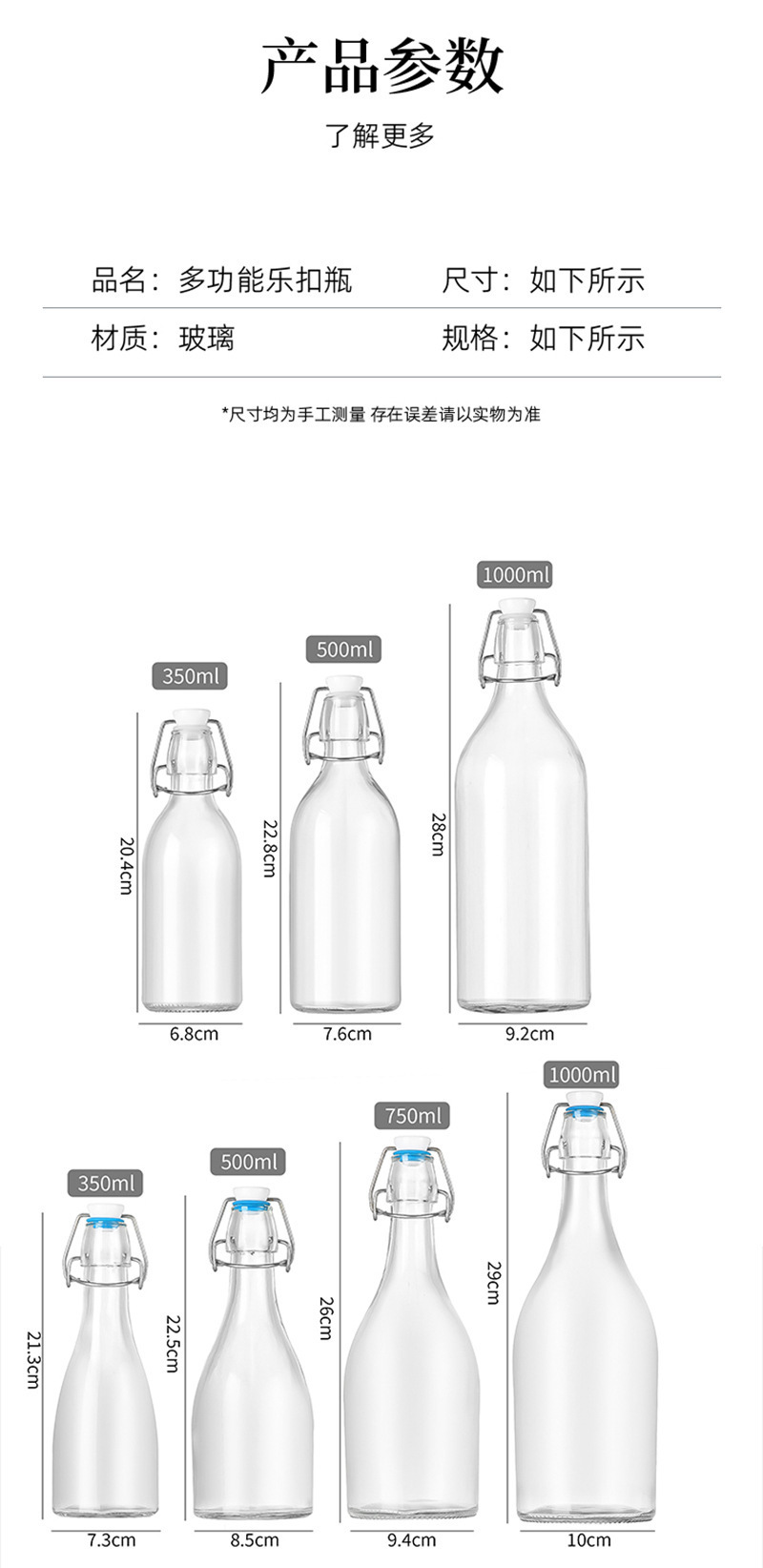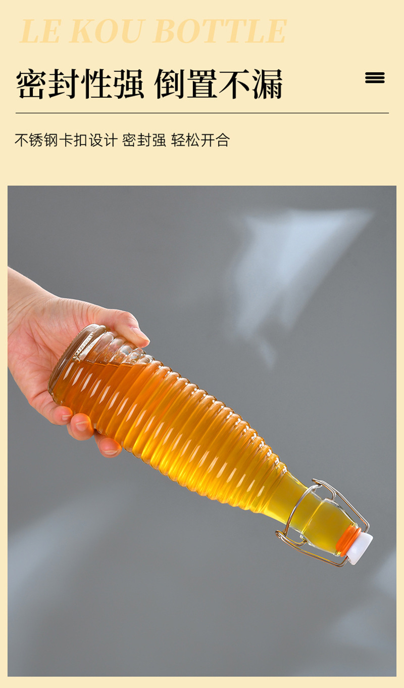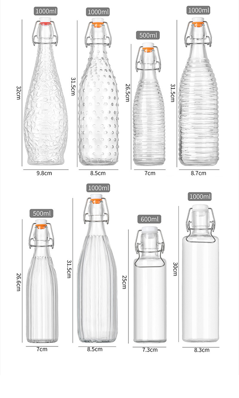 Botella de bebida de vino de fruta transparente botella de enzima de sellado botella de leche botella de jugo botella de aceite doméstica botella de vidrio de sellado de presión