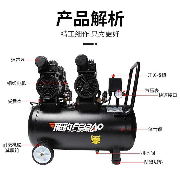Bomba de aire de leopardo pequeño compresor de aire silencioso sin aceite 220v carpintería de alta presión compresor de aire doméstico de alta potencia