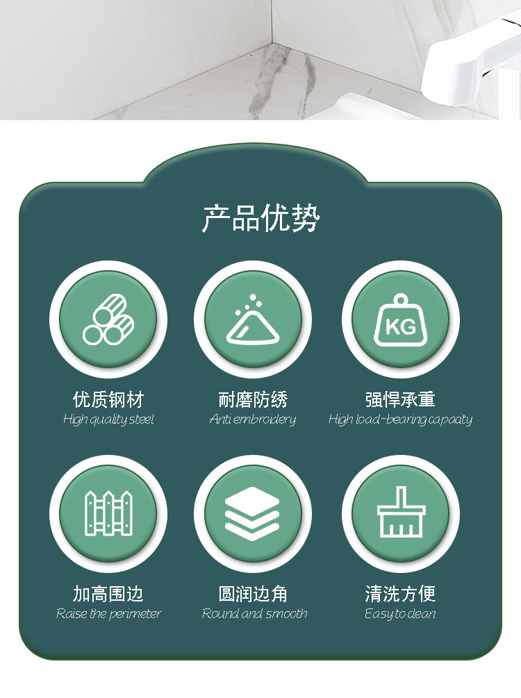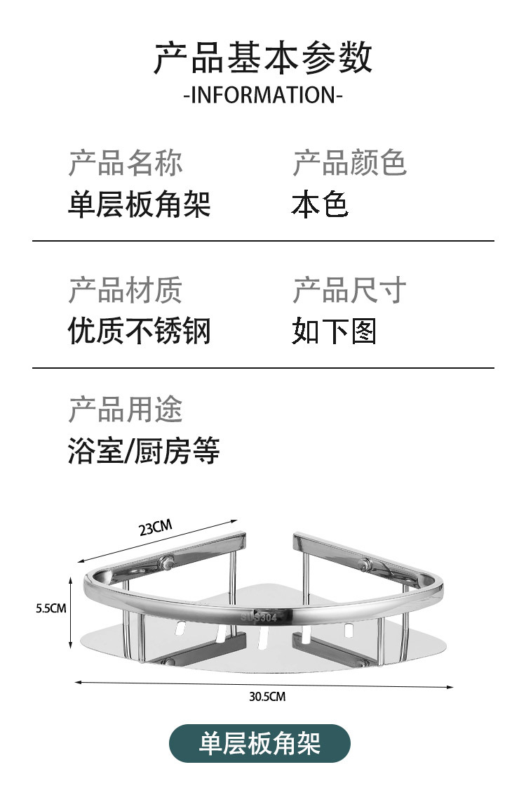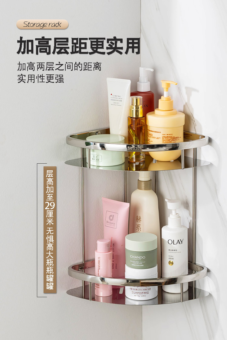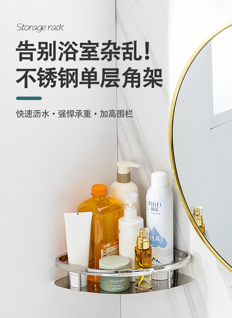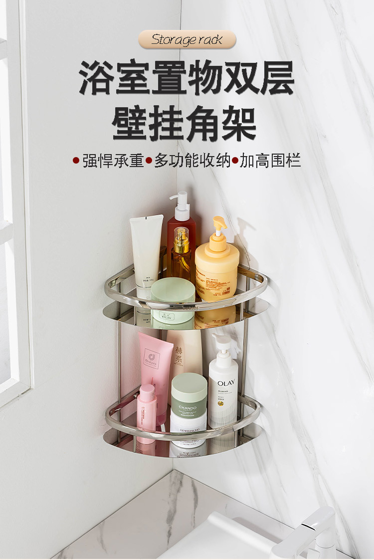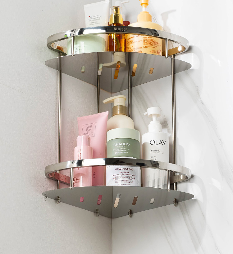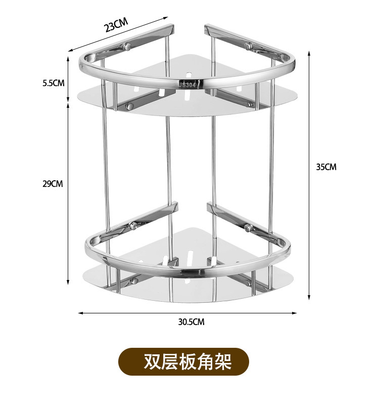 Estante de baño de acero inoxidable inodoro de hotel lavabo inodoro de drenaje de almacenamiento de doble capa placa marco de esquina