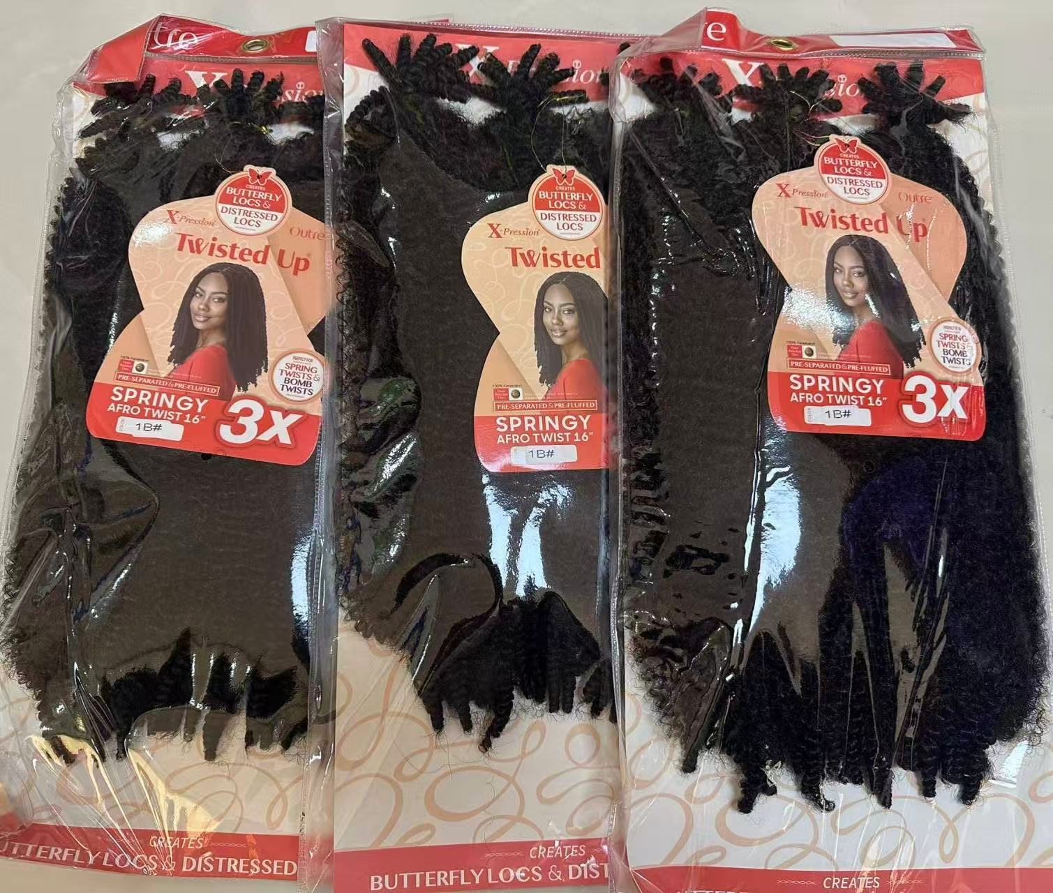 3X peluca de oruga rasgada a mano Afro Twist Kinky Marley Bulk Hair Juego de tres piezas