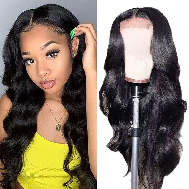Encaje frontal 5x5 cubierta de la cabeza del cuerpo Peluca de cabello humano negro peluca africana