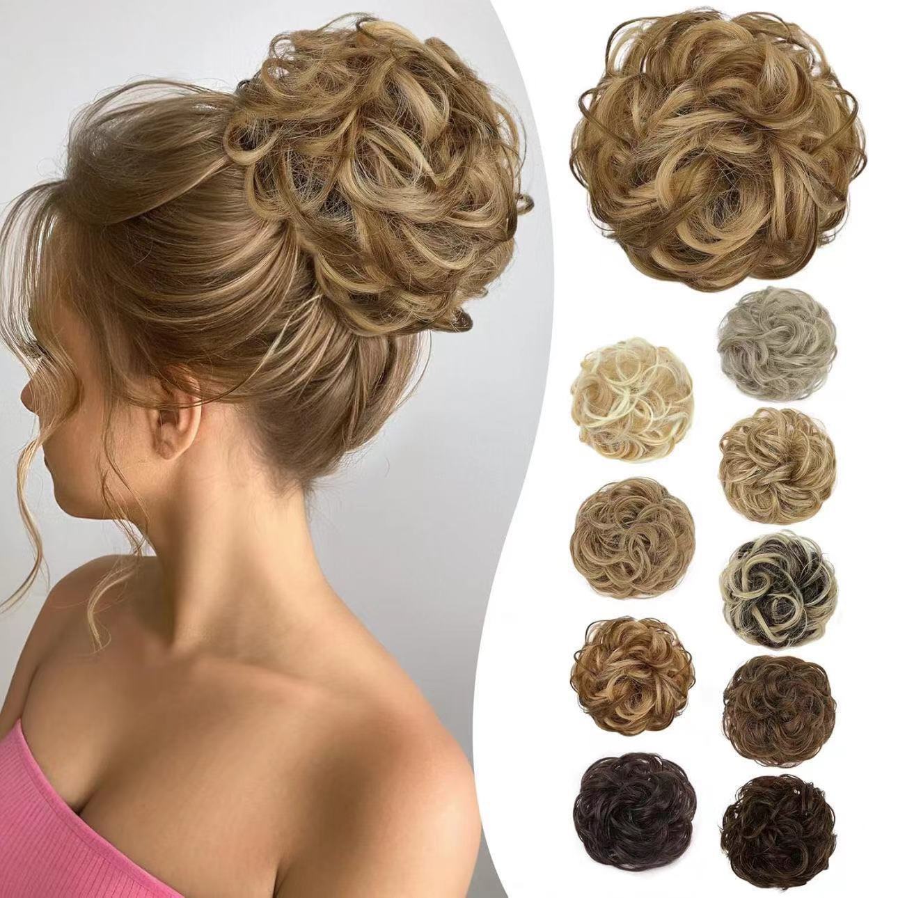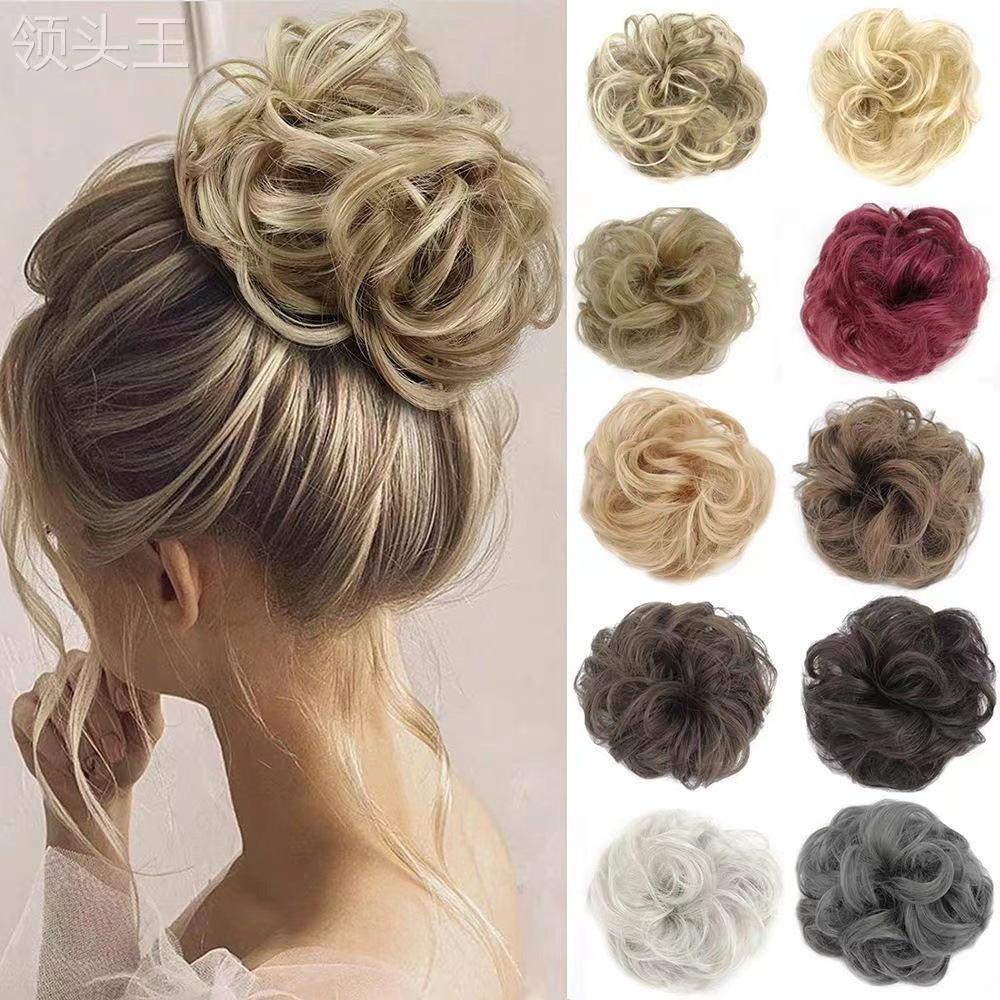 Anillo de pelo rizado cola de caballo desordenada esponjosa cabeza de bola natural comercio exterior bolsa de pelo rizado fibra química peluca cola de caballo adornos