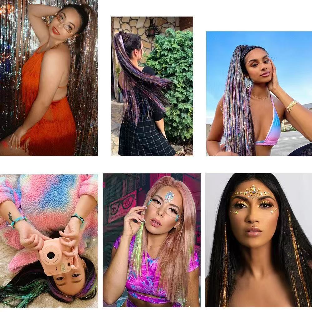 Las extensiones de cabello de alambre láser europeas y estadounidenses pelucas de color oro brillante extensiones de cabello de 120cm extensiones de cabello