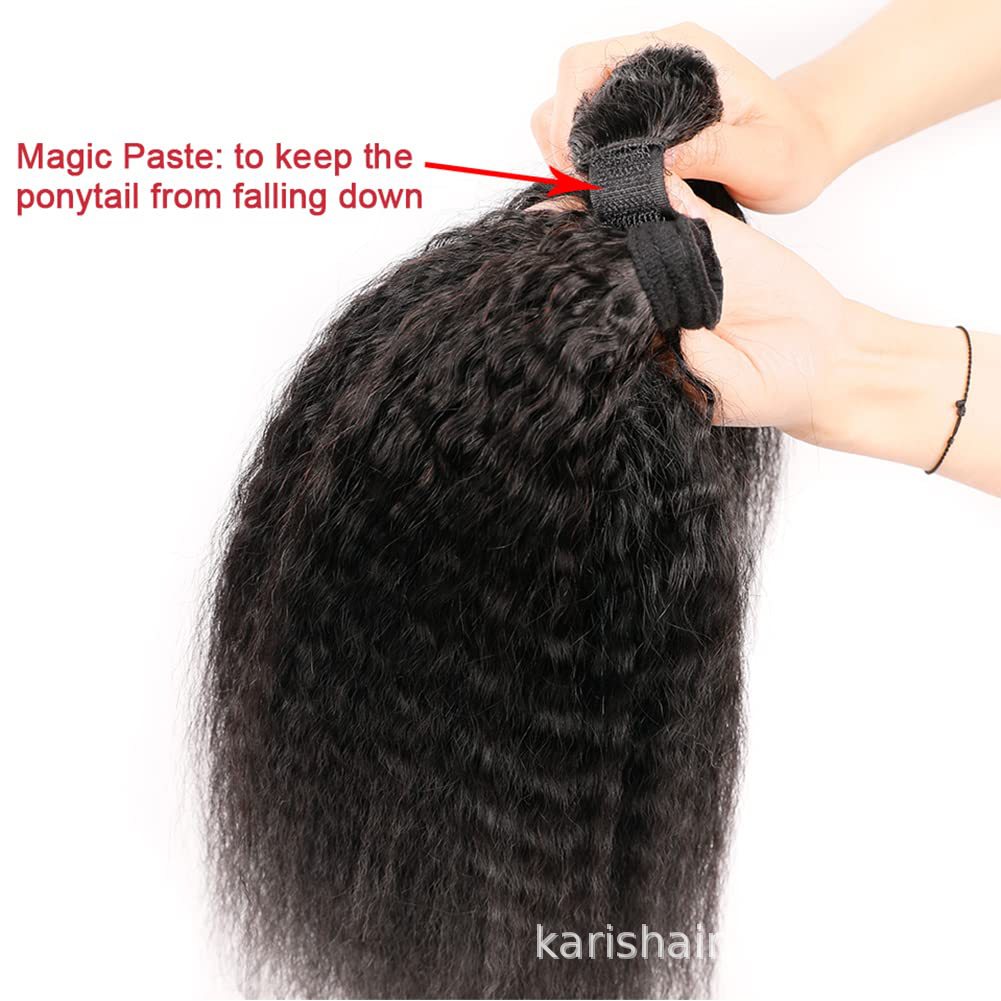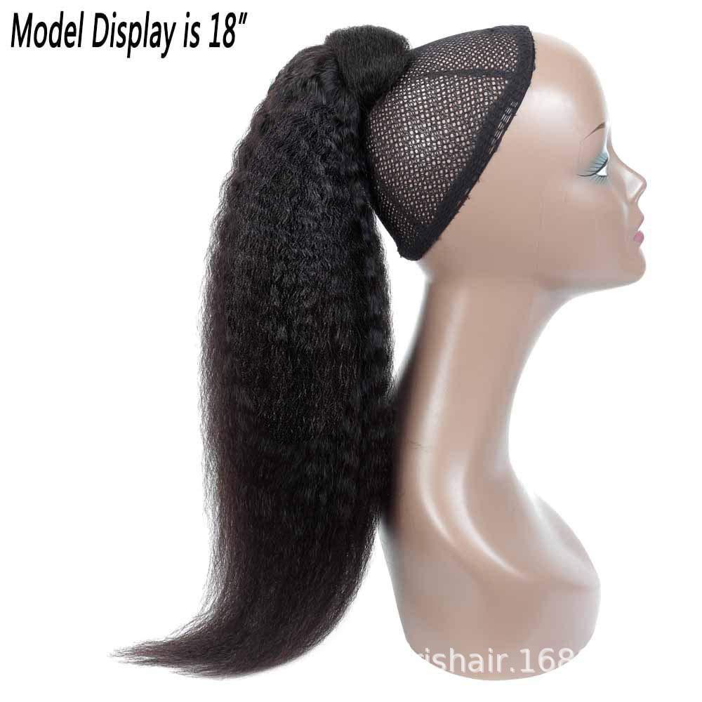 Pelo recto rizado de la cola de caballo Cabello humano real Velcro Peluca de cola de caballo Cabello humano