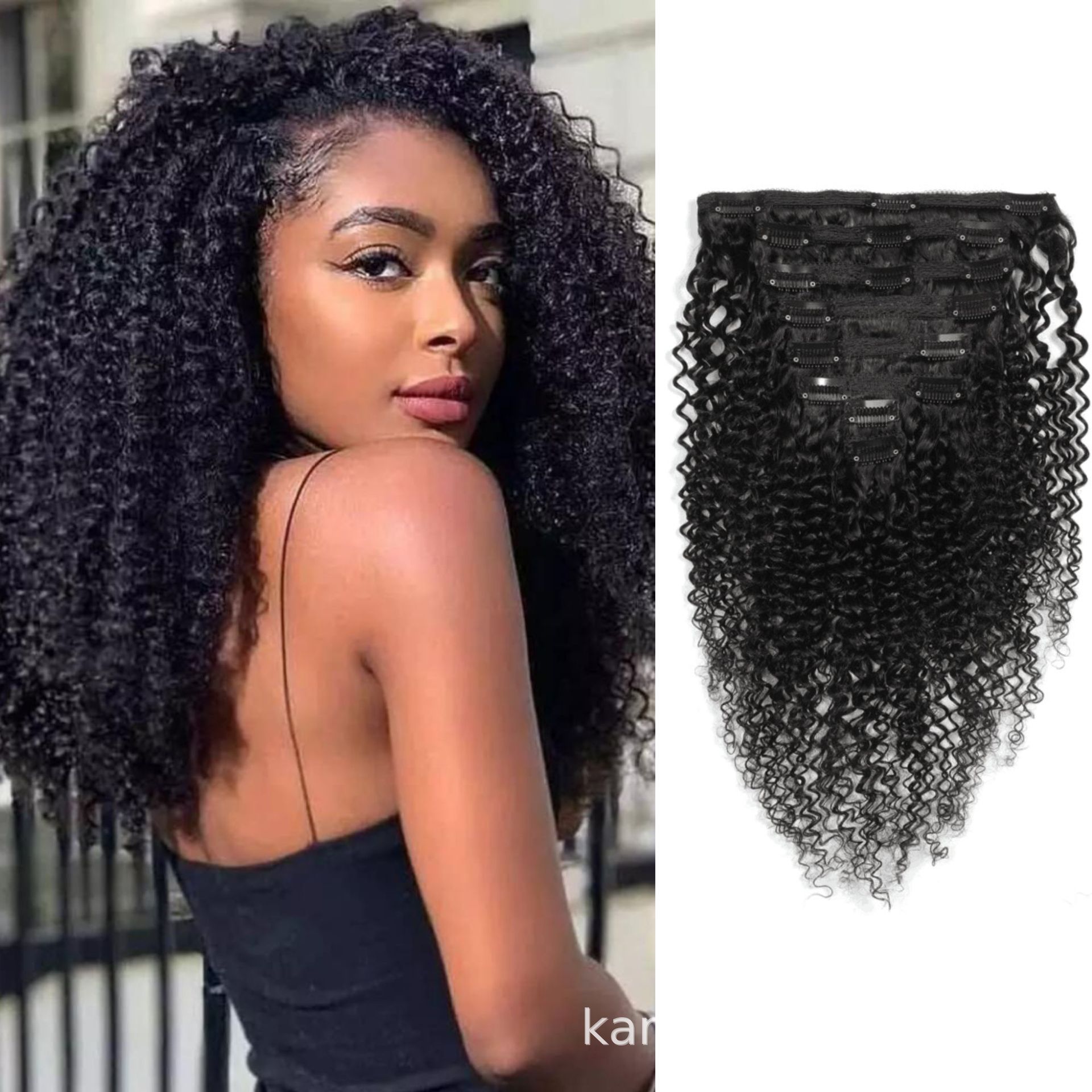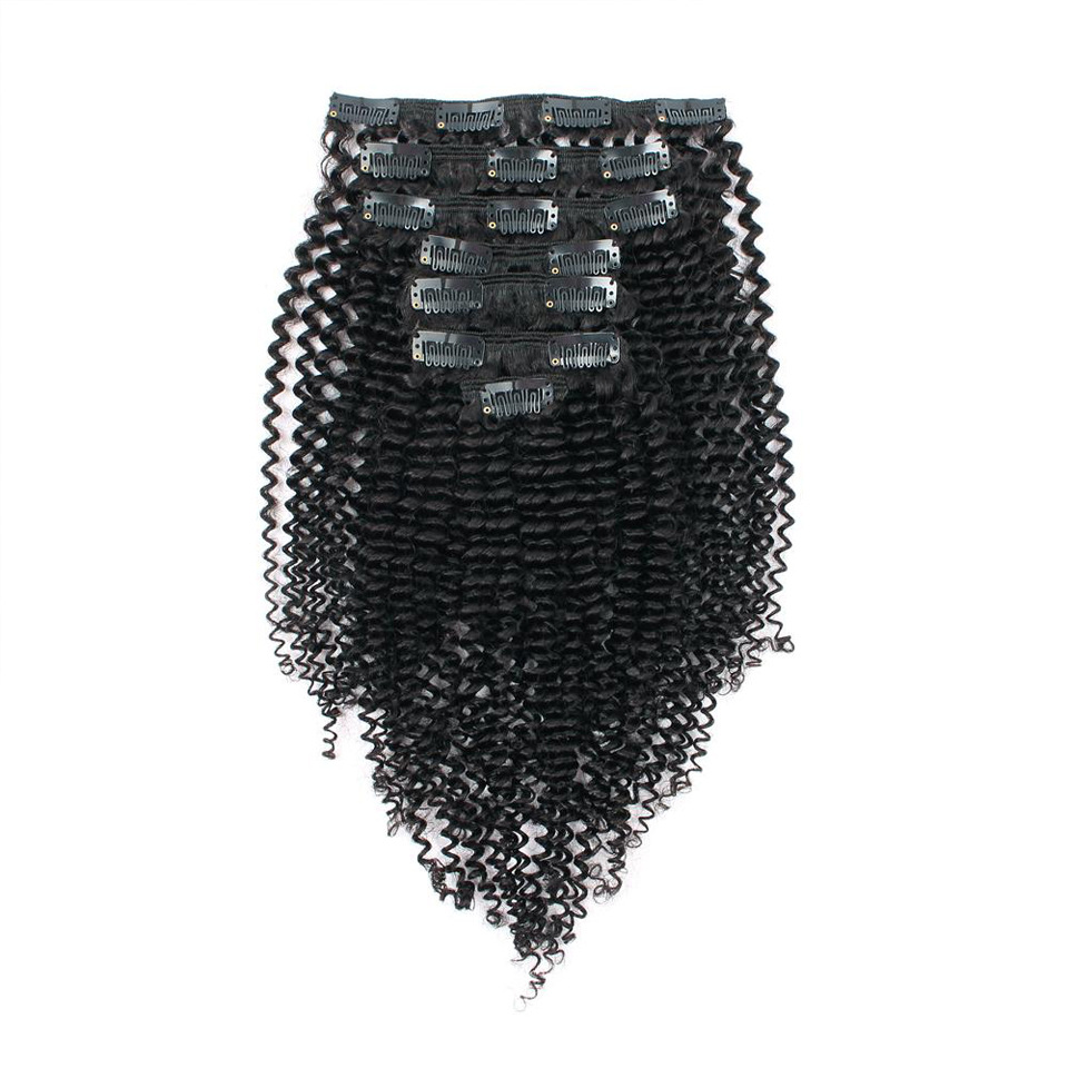 Juego de 8 piezas de peluca de cabello humano real con clip, rizadas, de cabello humano real.