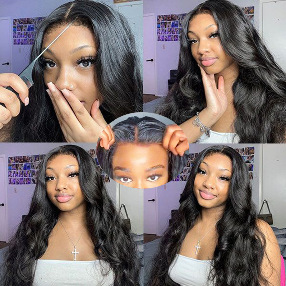 4x4 cuerpo glueless peluca desgaste para ir europeo y americano real pelo humano frente encaje tocado