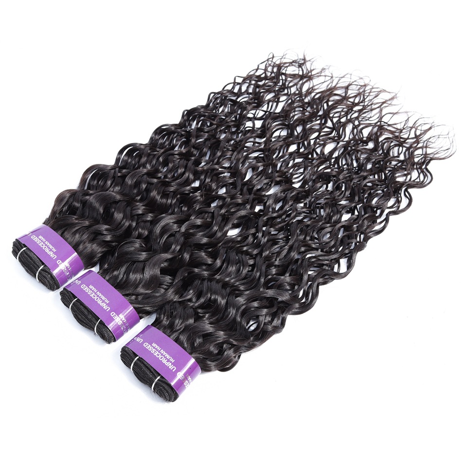 Fibra de vidrio cabello humano real Peluca europea y americana pelo cortina paquete agua onda cabello humano liso cabello humano