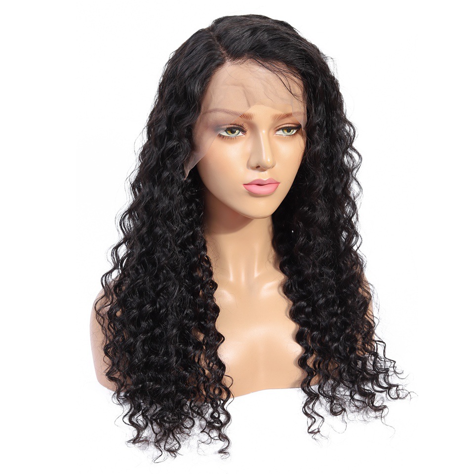 13x4 onda profunda frente encaje real peluca cabeza cubierta profunda peluca rizada encaje pelo cubierta negro