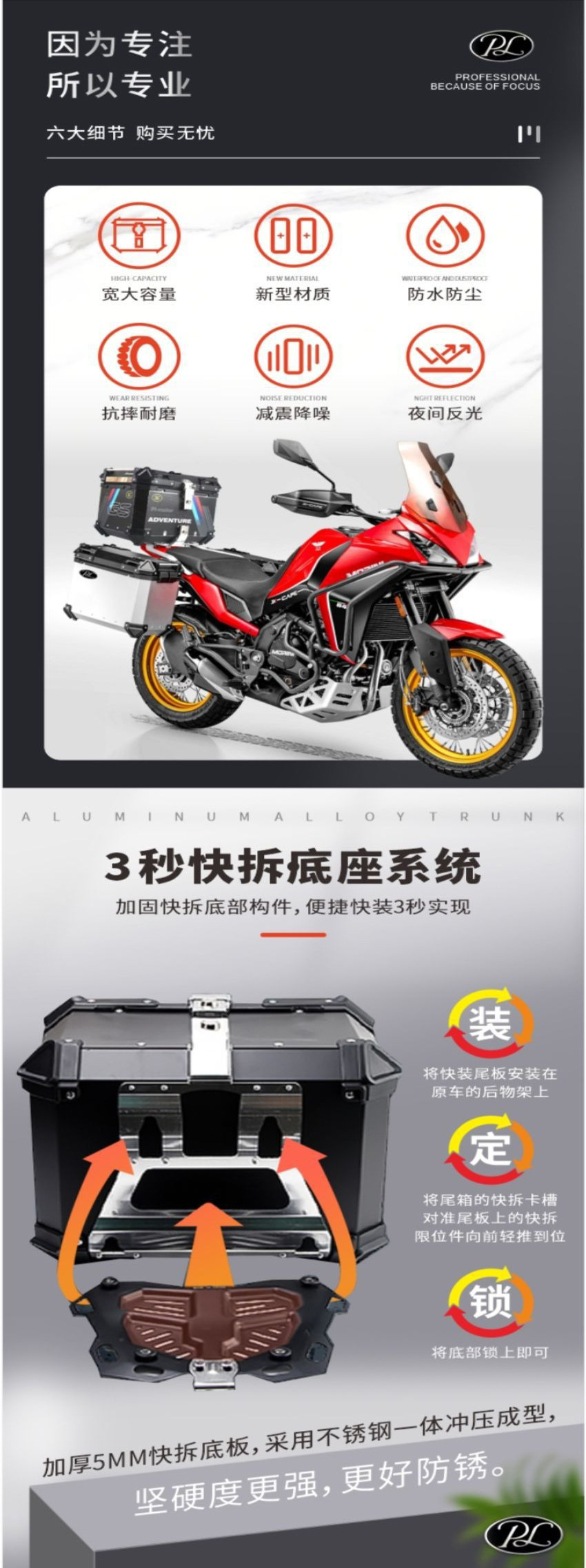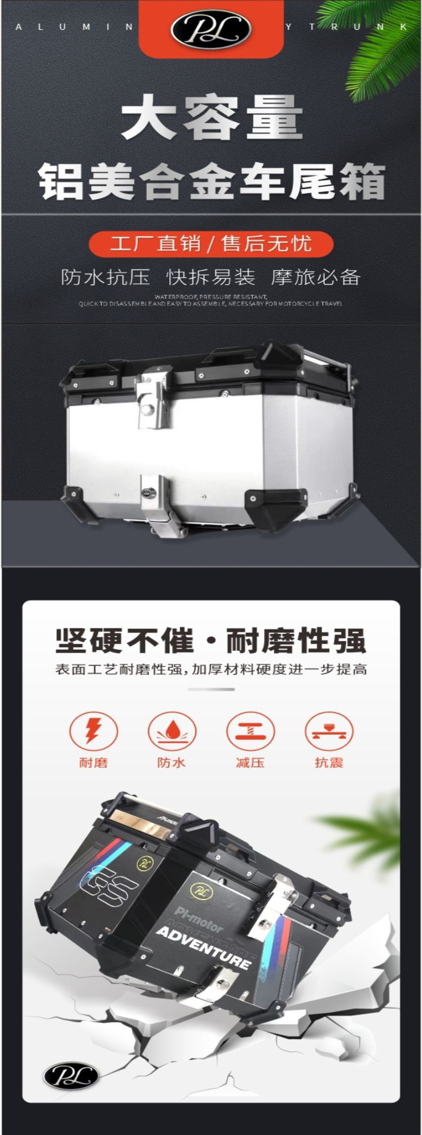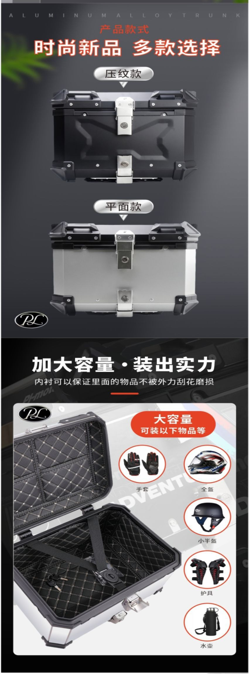 Caja de almacenamiento de aluminio plano de gran capacidad Caja de almacenamiento de locomotora de camping 65L Plata / Negro Durable