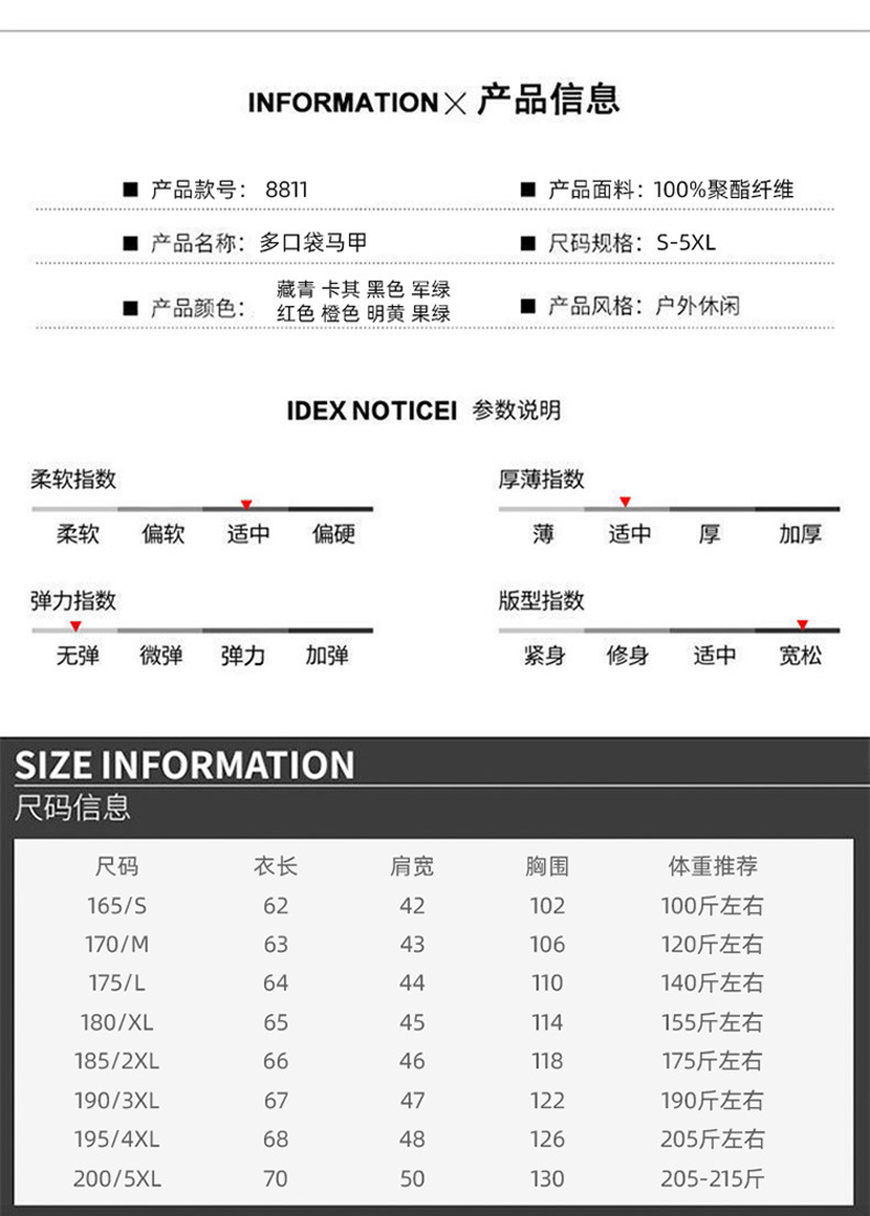 | Colores | Caqui FJ-GJ8811 [multibolsillos transpirables, gancho en la espalda],Naranja FJ-GJ8811 [transpirable, multibolsillos, con gancho en la parte trasera],Rojo FJ-GJ8811 [transpirable, multibolsillos, con gancho en la parte trasera],Amarillo brillante FJ-GJ8811 [multibolsillos transpirables, gancho en la espalda],Verde fruta FJ-GJ8811 [transpirable, multibolsillos, con gancho en la parte trasera],Verde militar FJ-GJ8811 [multibolsillos transpirable, gancho en la espalda],Azul marino FJ-GJ8811 [multibolsillos transpirables, gancho en la espalda],Negro FJ-GJ8811 [multibolsillos transpirables, gancho en la espalda],Rojo FJ-GJ8168 [nylon suave y cómodo, almacenamiento extraíble y transpirable en la parte posterior],Naranja FJ-GJ8168 [nylon suave y cómodo, almacenamiento extraíble y transpirable en la parte posterior],Azul FJ-GJ8168 [nylon suave y cómodo, almacenamiento extraíble y transpirable en la parte posterior],Caqui FJ-GJ8168 [nylon suave y cómodo, almacenamiento extraíble y transpirable en la parte posterior],Gris FJ-GJ8168 [nylon suave y cómodo, almacenamiento extraíble y transpirable en la parte posterior],Azul oscuro FJ-GJ8168 [nylon suave y cómodo, almacenamiento extraíble y transpirable en la parte posterior],Verde militar FJ-GJ8168 [nylon suave y cómodo, almacenamiento extraíble y transpirable en la parte posterior],Negro FJ-GJ8168 [nylon suave y cómodo, almacenamiento extraíble y transpirable en la parte posterior],FJ-HLL8898 beige [Nylon suave y cómodo, almacenamiento extraíble y transpirable en la parte trasera],FJ-HLL8898 verde fluorescente [Nylon suave y cómodo, almacenamiento extraíble y transpirable en la parte trasera],FJ-HLL8898 rojo [Nylon suave y cómodo, almacenamiento extraíble y transpirable en la espalda],FJ-HLL8898 rojo anaranjado [Nylon suave y cómodo, almacenamiento extraíble y transpirable en la parte trasera],FJ-HLL8898 azul pavo real [Nylon suave y cómodo, almacenamiento extraíble y transpirable en la espalda],Cucca FJ-HLL8898 [Nylon suave y cómodo, almacenamiento extraíble y transpirable en la parte trasera],FJ-HLL8898 gris [Nylon suave y cómodo, almacenamiento extraíble y transpirable en la parte trasera],Camuflaje de FJ-HLL8898 verde militar [Nylon suave y cómodo en la espalda, almacenamiento desmontable y transpirable],FJ-HLL8898 caque de camuflaje [Nylon suave y cómodo en la espalda, almacenamiento desmontable y transpirable],FJ-HLL8898 azul real [Nylon suave y cómodo, almacenamiento extraíble y transpirable en la parte trasera],FJ-HLL8898 verde militar [Nylon suave y cómodo, almacenamiento extraíble y transpirable en la parte trasera],FJ-HLL8898 azul marino [Nylon suave y cómodo, almacenamiento extraíble y transpirable en la parte trasera],FJ-HLL8898 negro [Nylon suave y cómodo, almacenamiento extraíble y transpirable en la espalda] |