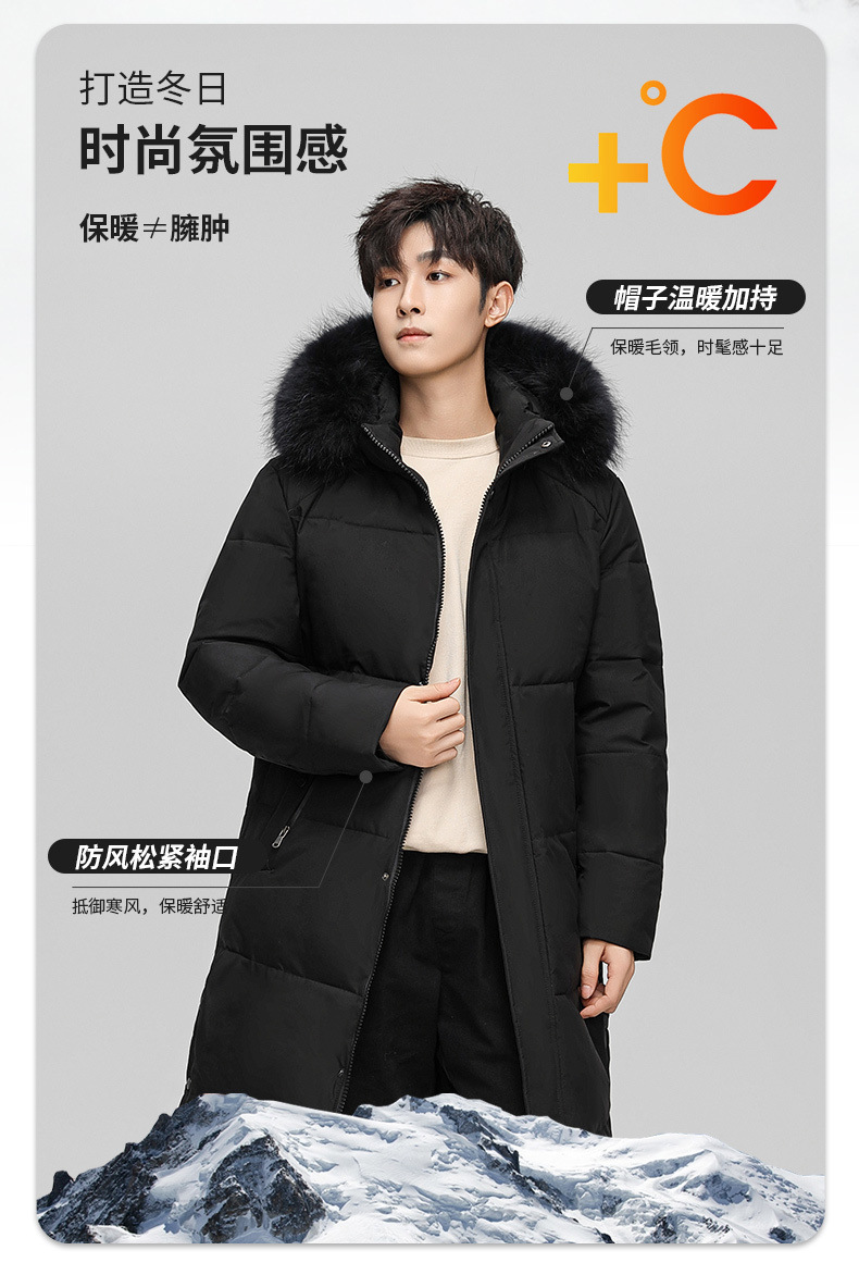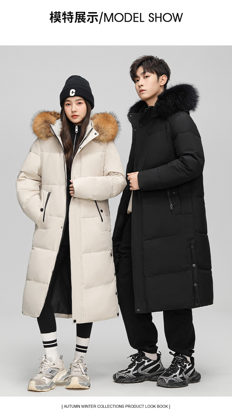 Gran cuello de pelo frío transfronterizo chaqueta de rodilla chaqueta de invierno chaqueta de plumón larga hombre grueso personalizado