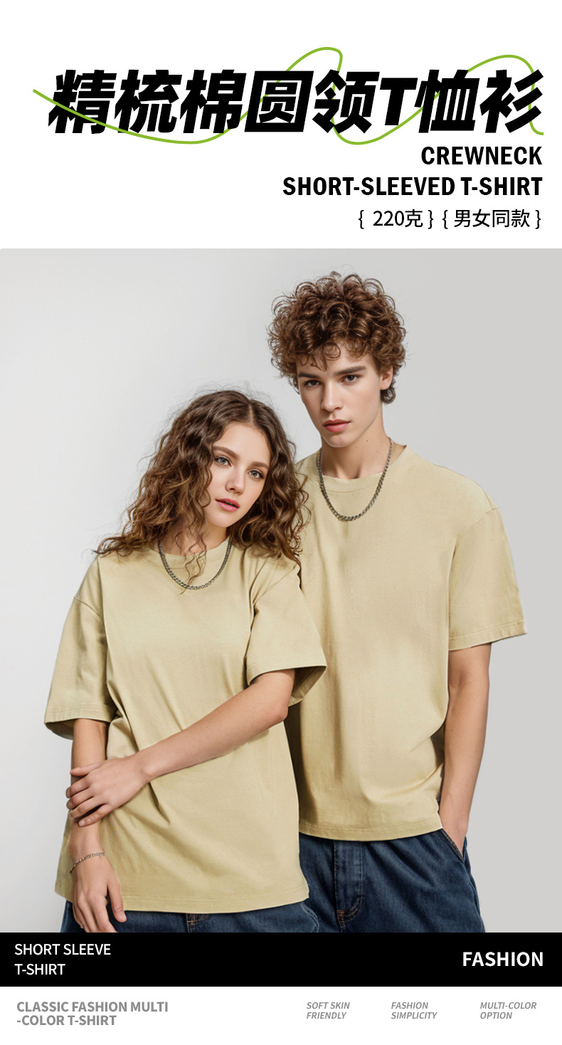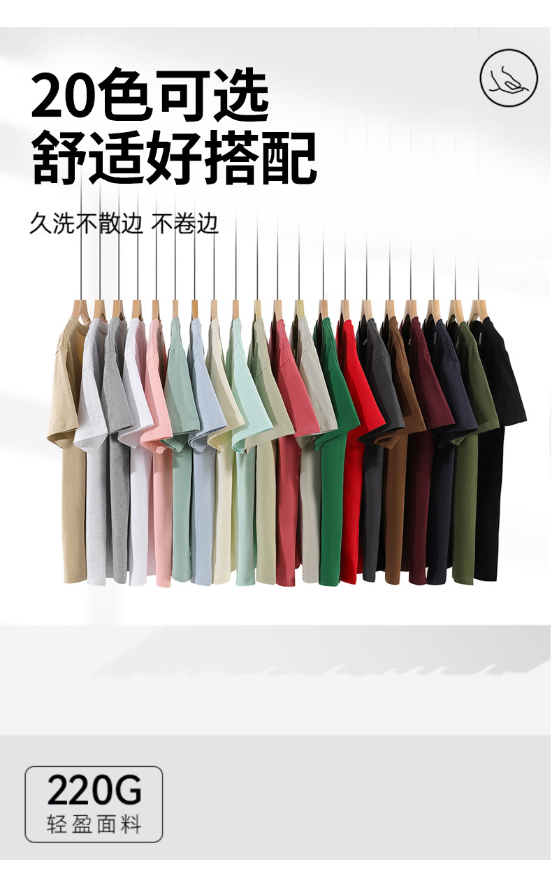 220g de peso pesado, ropa de trabajo de grupo sin deformación, camisa cultural, camisa publicitaria, camiseta personalizada de algodón de manga corta, logotipo impreso