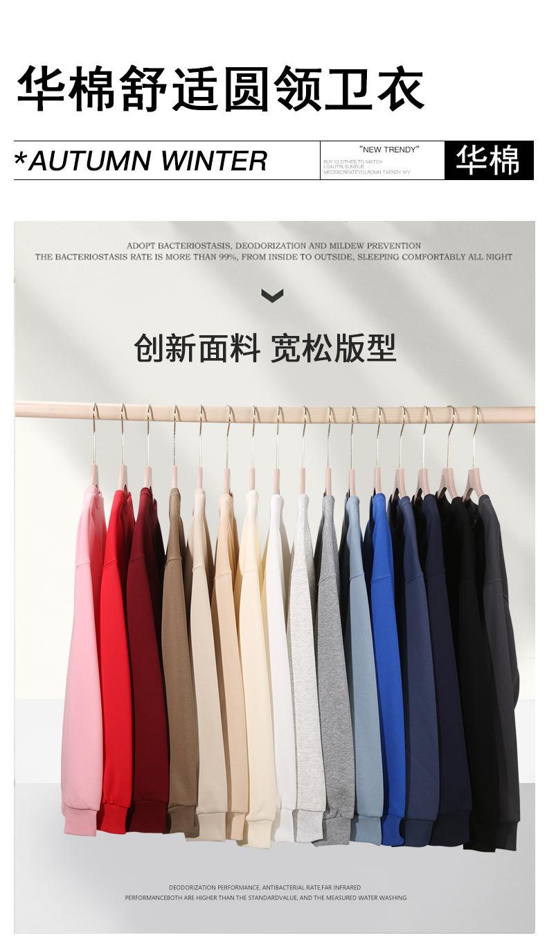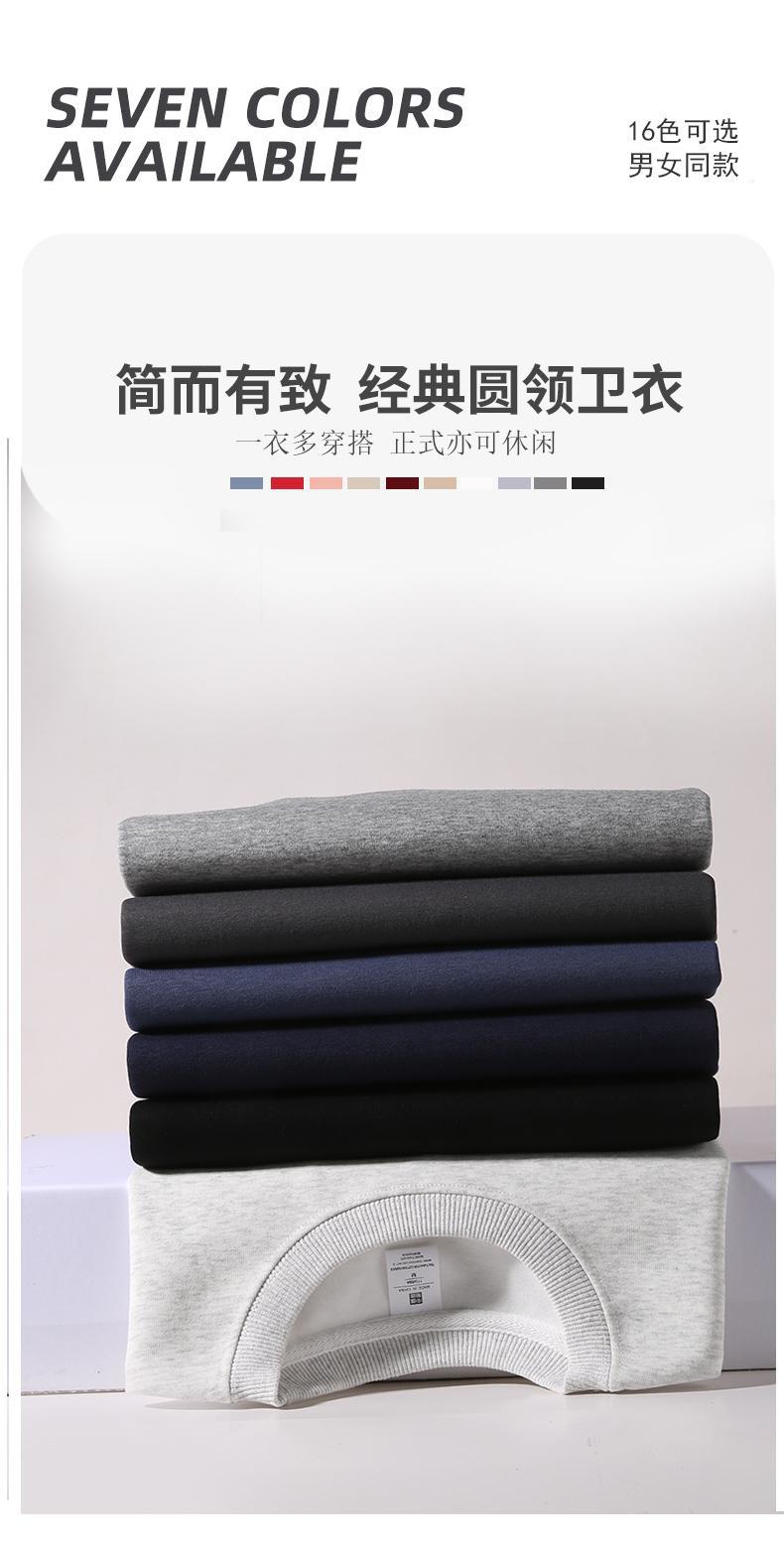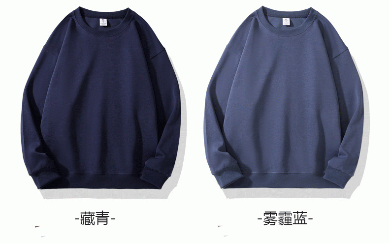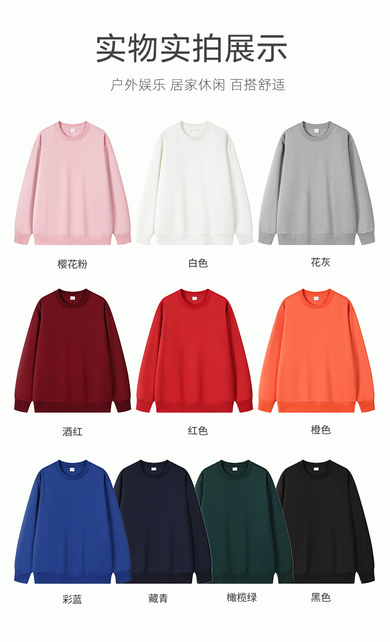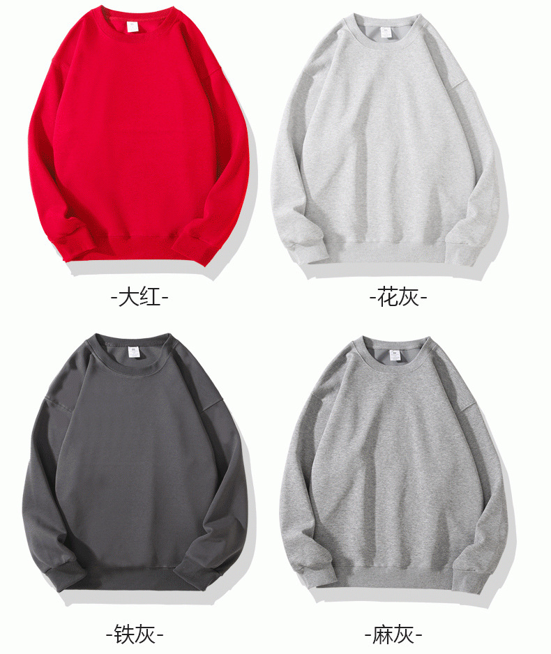 Hua algodón tejido liso de doble cara, hombros cómodos, cuello redondo, suéter de manga larga, camisa publicitaria, ropa de trabajo grupal, logotipo personalizado