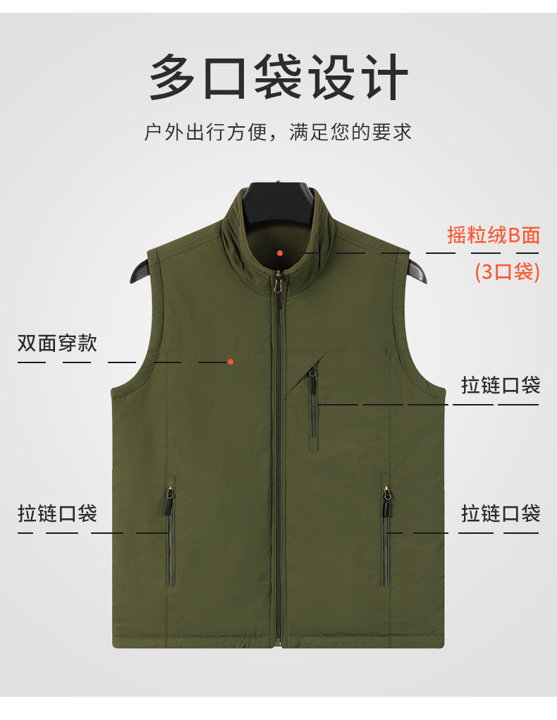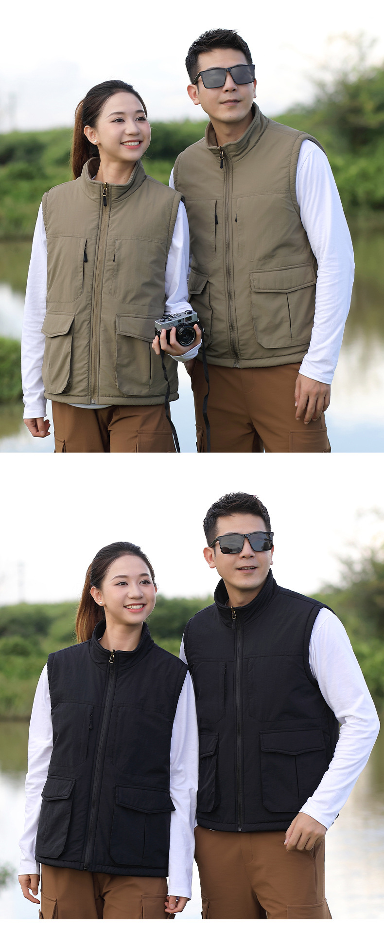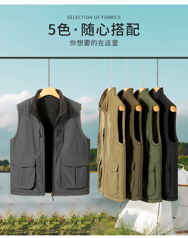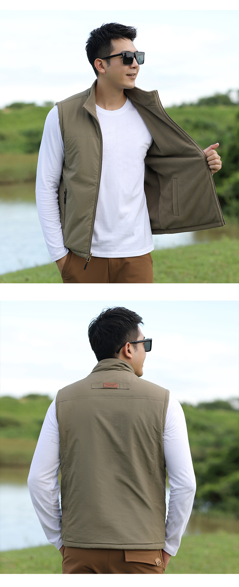 Herramientas de fotografía de pesca al aire libre de bolsillo chaleco de clip de caballo otoño y invierno doble cara vestir chaleco de terciopelo personalizado hombre