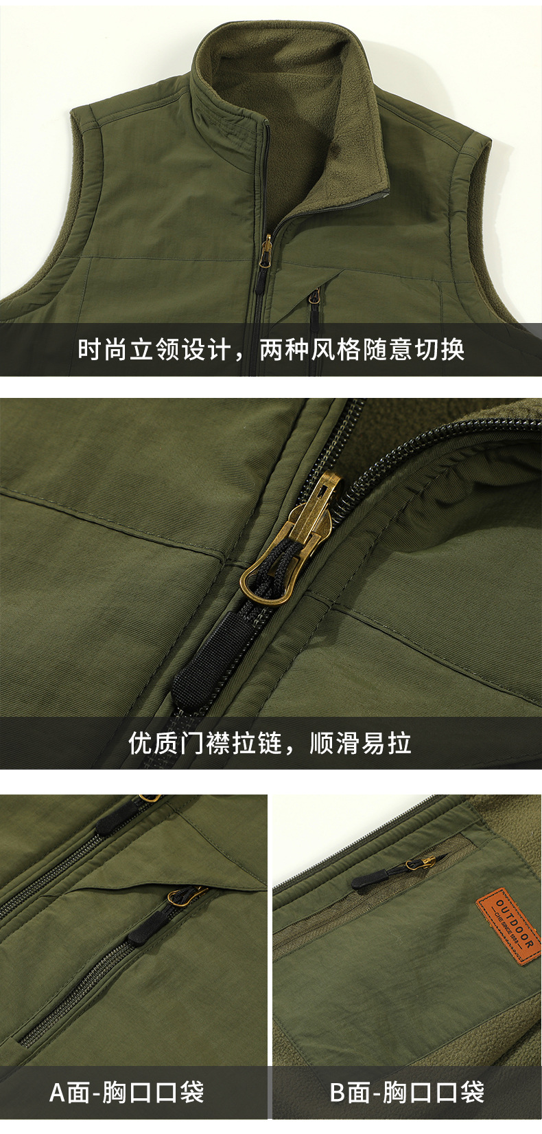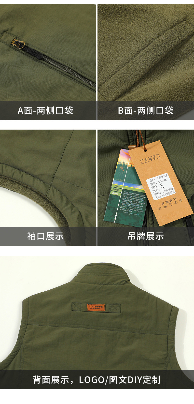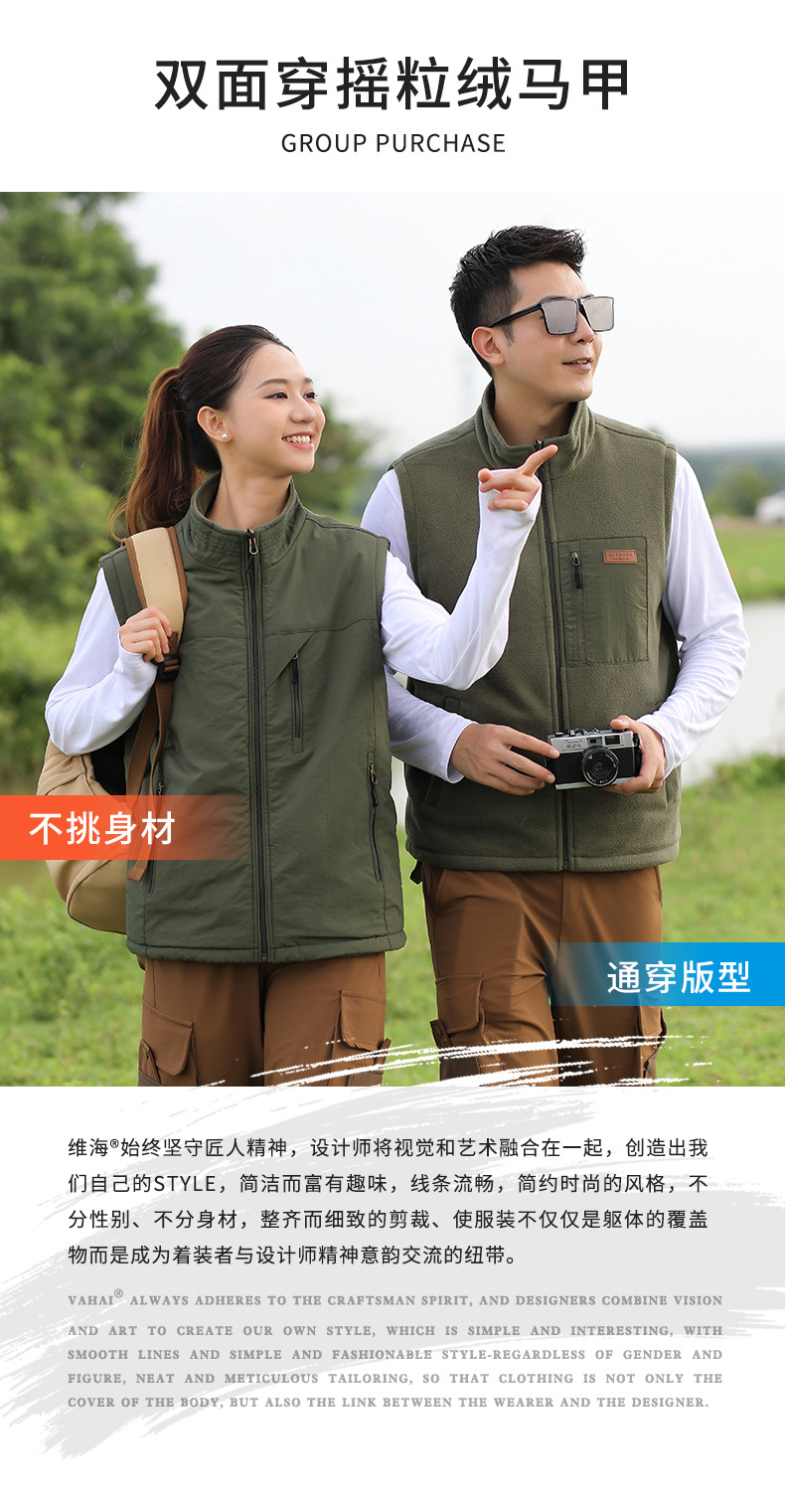 Herramientas de fotografía de pesca al aire libre de bolsillo chaleco de clip de caballo otoño y invierno doble cara vestir chaleco de terciopelo personalizado hombre