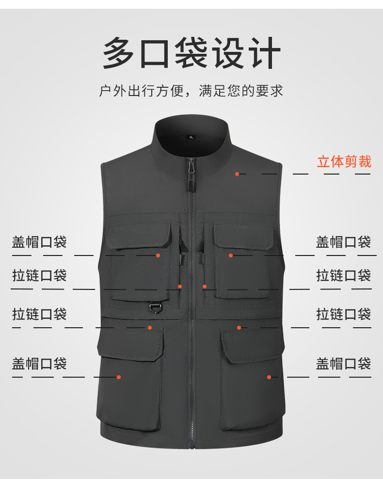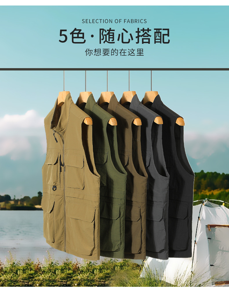 chaleco de pesca de alta gama de nylon rápido secado fotografía caballo clip hombre al aire libre montaña multi-bolsillo chaleco personalizado