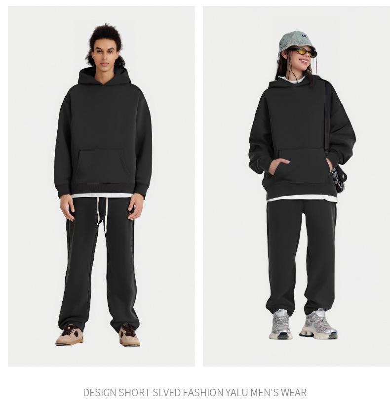 Otoño y invierno transfronterizos ropa deportiva de moda americana de dos piezas set casual con capuchón de lana set suéter hombre personalizado