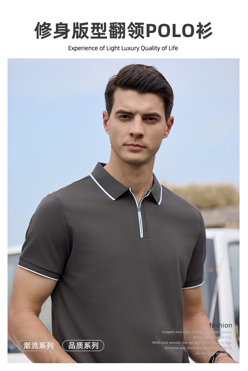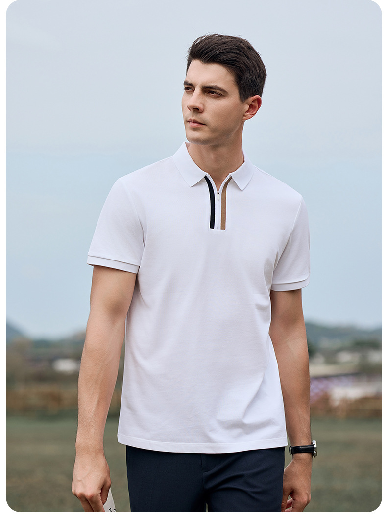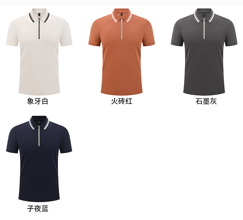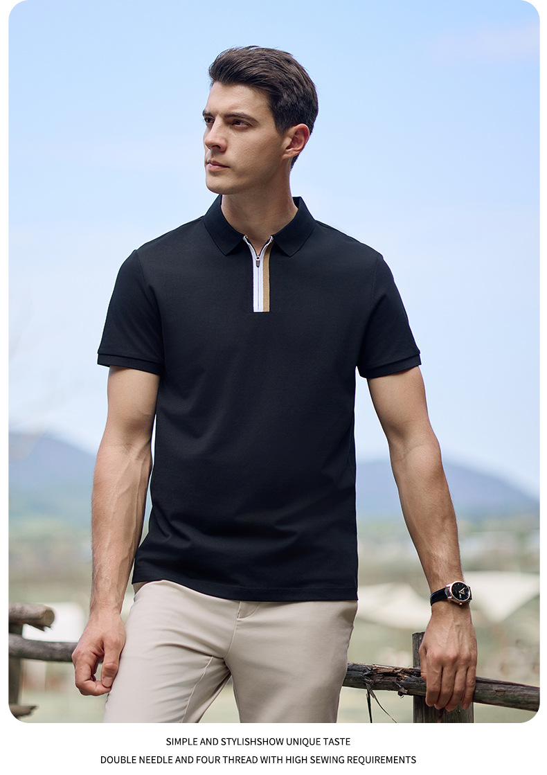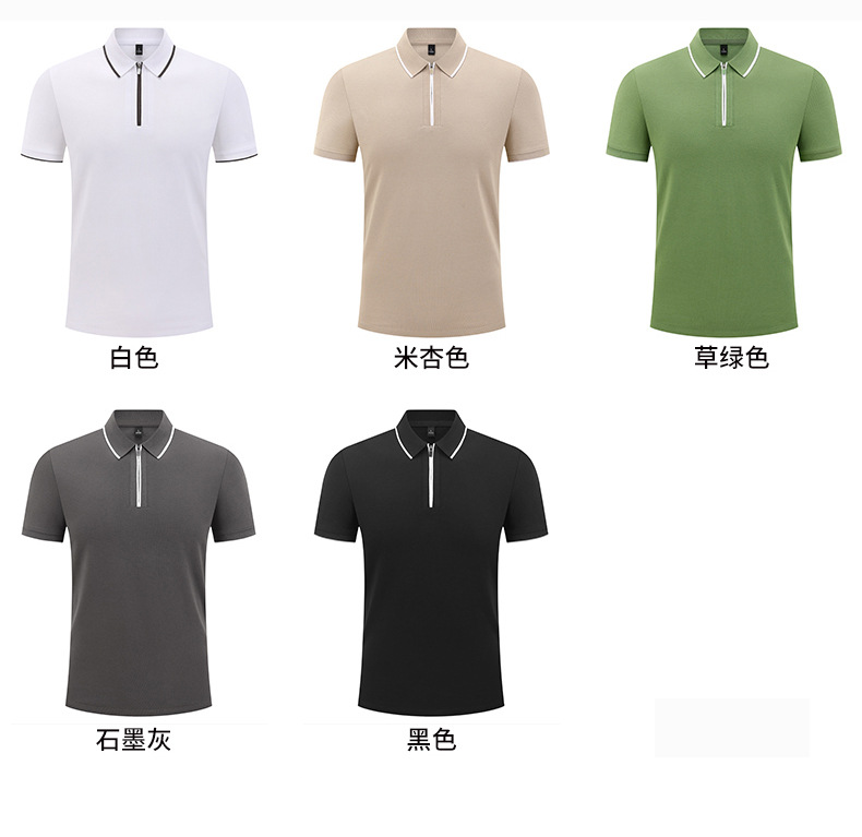 Camiseta de negocios para hombre con cuello de cinta de gama alta, polo de hombre de manga corta con cremallera, logotipo personalizado de alta gama