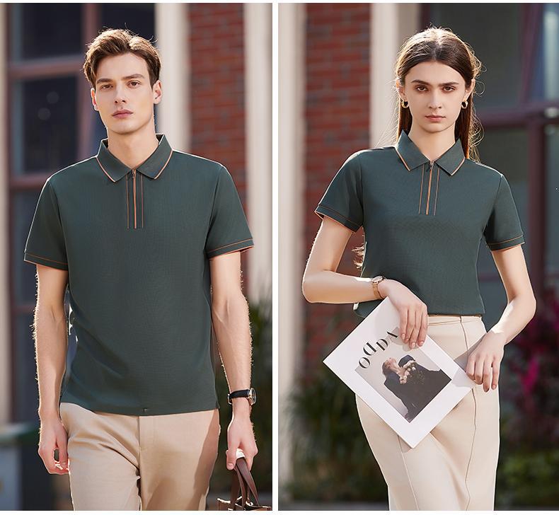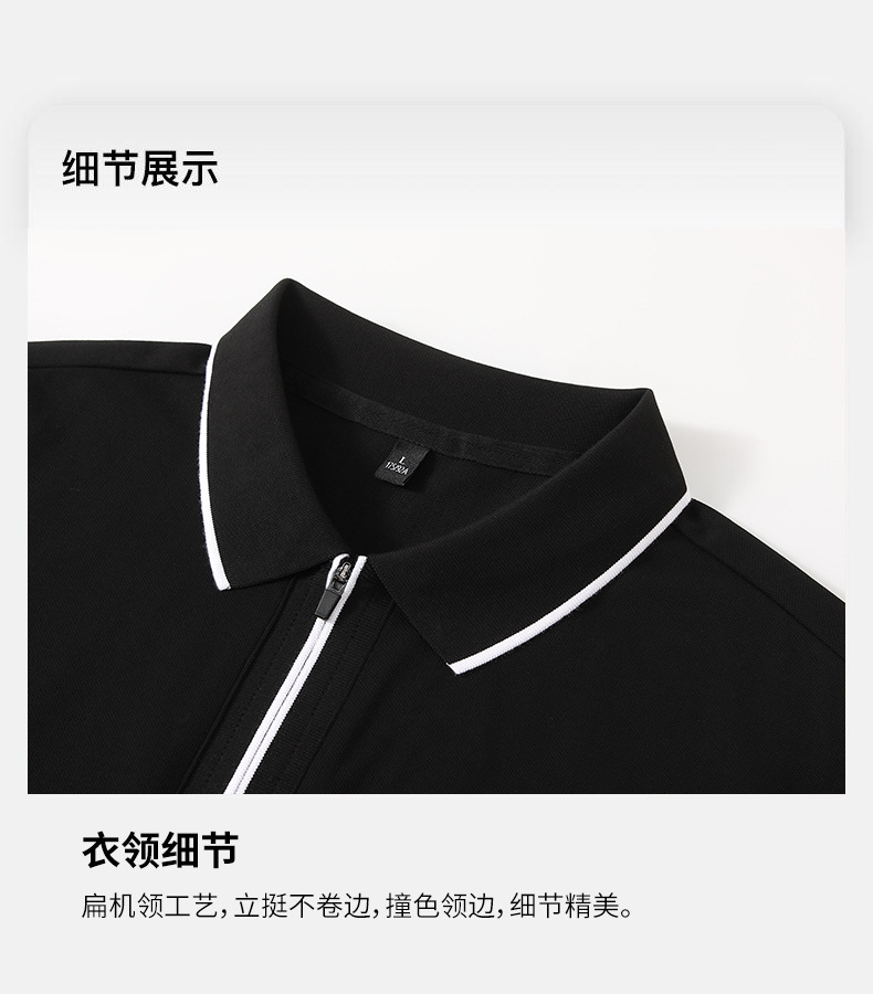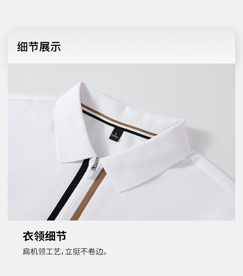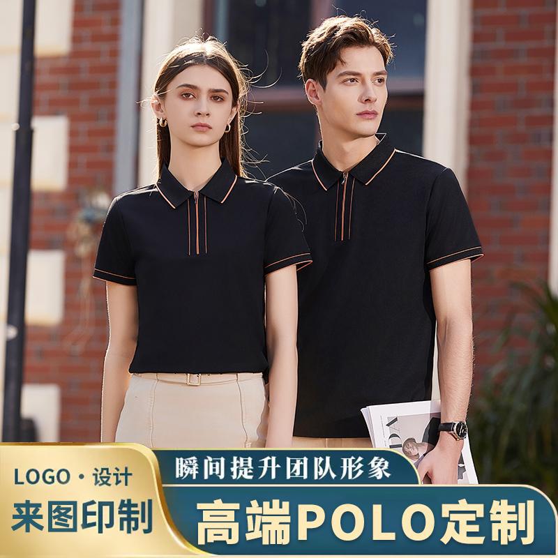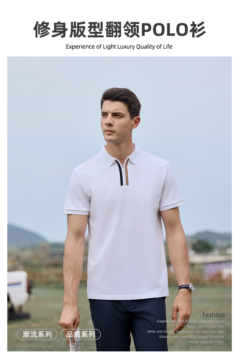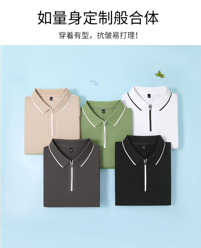 Camiseta de negocios para hombre con cuello de cinta de gama alta, polo de hombre de manga corta con cremallera, logotipo personalizado de alta gama