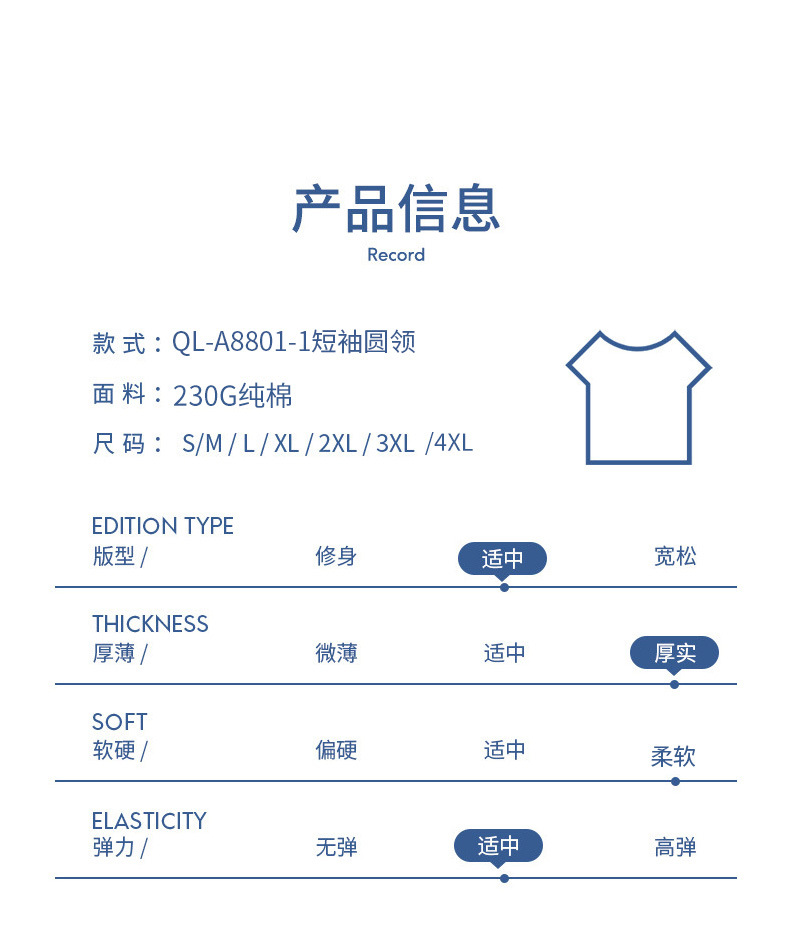 Número de artículoQL-A8801-1 Manga corta con cuello redondo M029