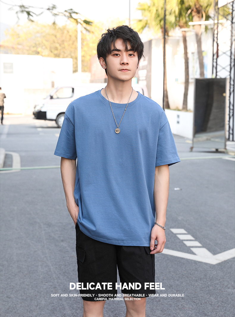 Gris oscuro y azul M029 [Algodón de fibra larga de Xinjiang con hombros caídos]