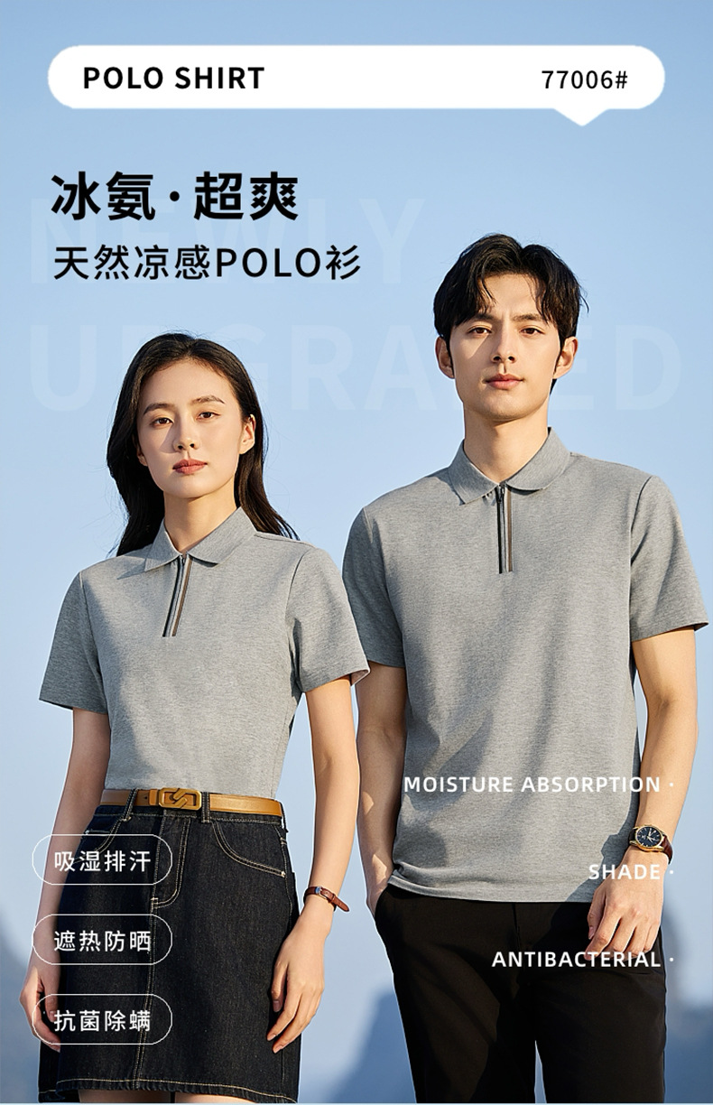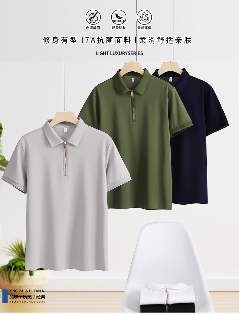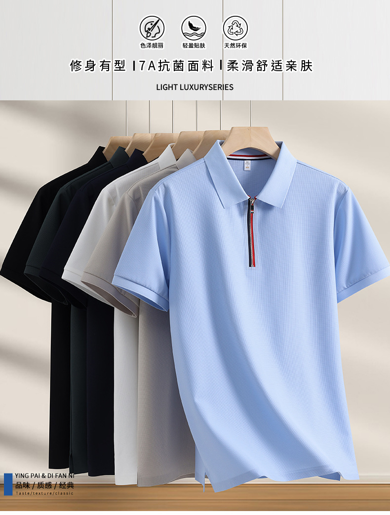 Media cremallera 7A antibacteriano, protector solar, protección UV, 50 fresco, polo de manga corta de negocios para hombres, personalizado