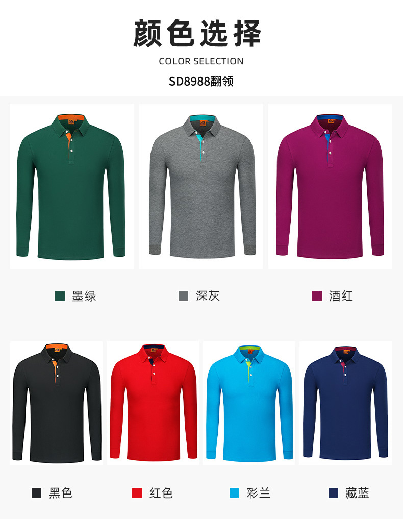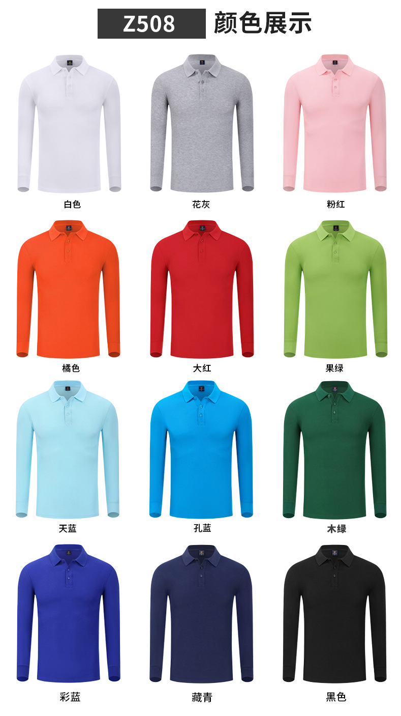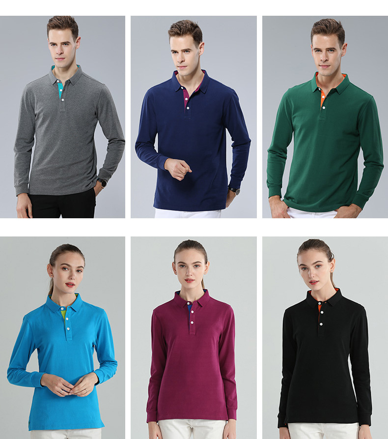 Otoño y invierno de color sólido cuello polo camiseta de polo de algodón blanco camiseta de polo de hombre manga larga vestido de trabajo personalizado bordado