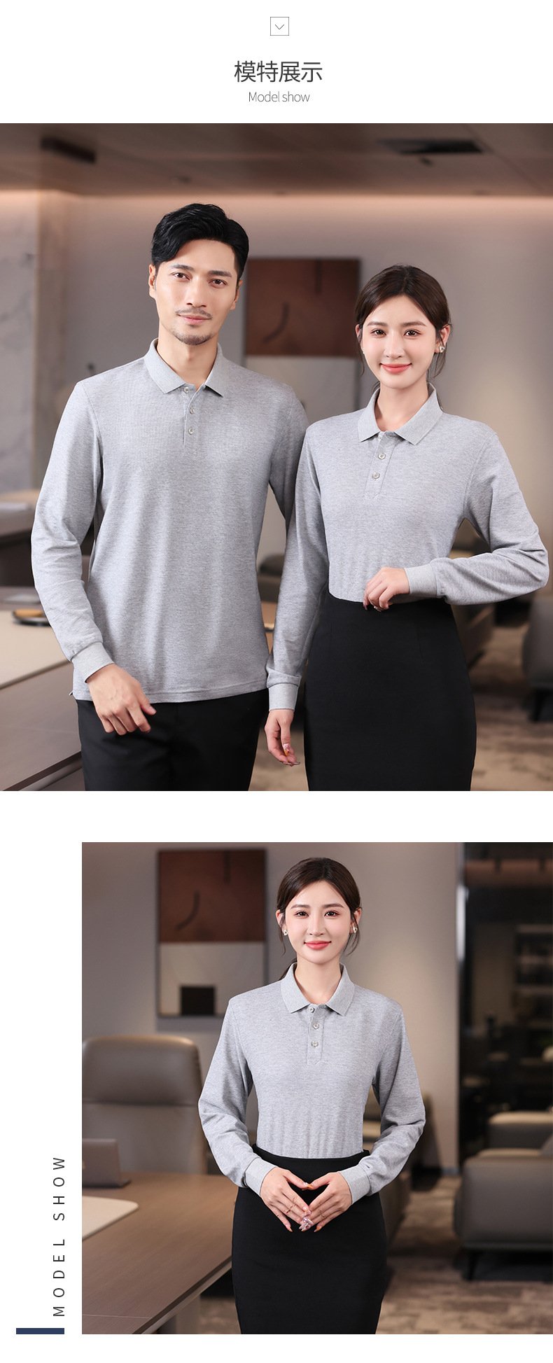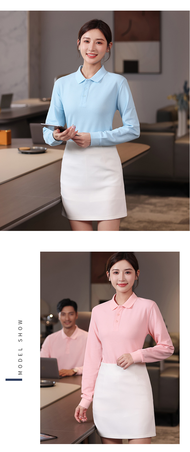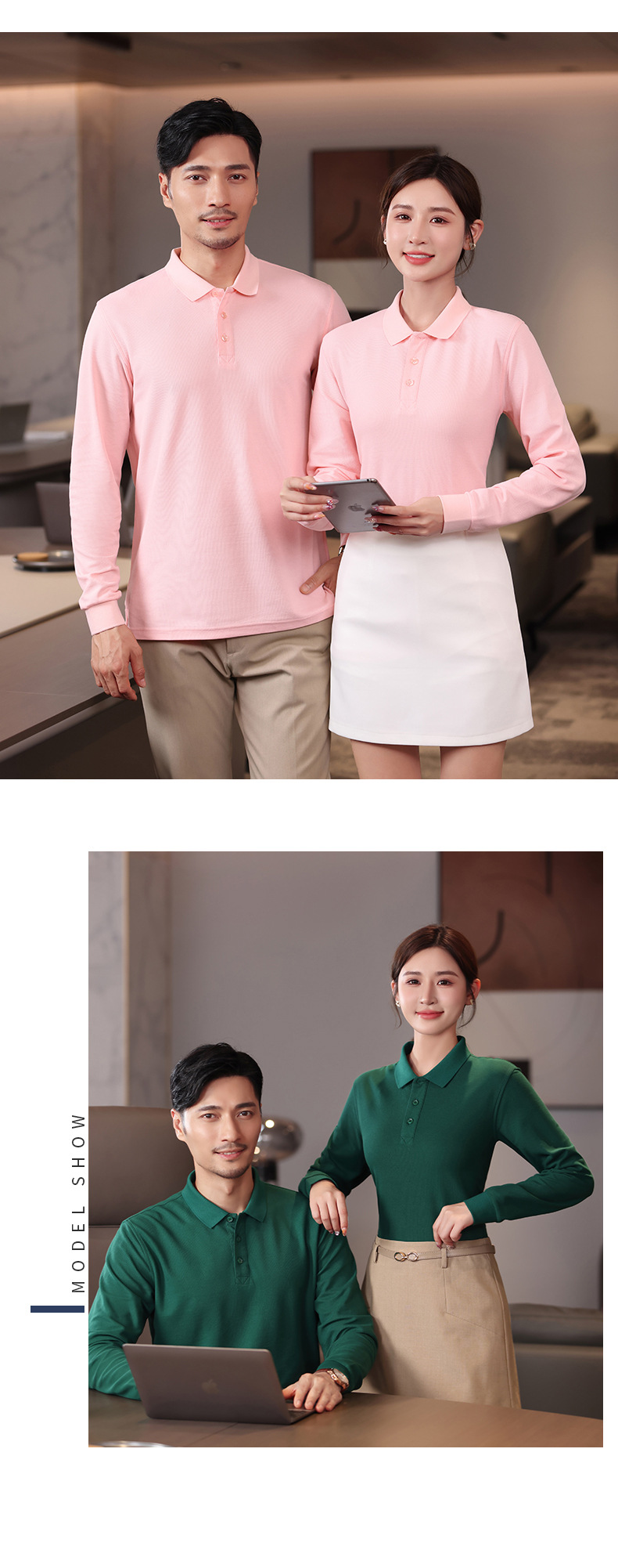 Otoño y invierno de color sólido cuello polo camiseta de polo de algodón blanco camiseta de polo de hombre manga larga vestido de trabajo personalizado bordado