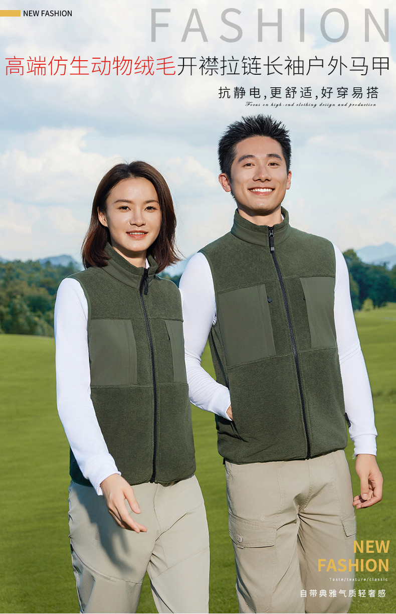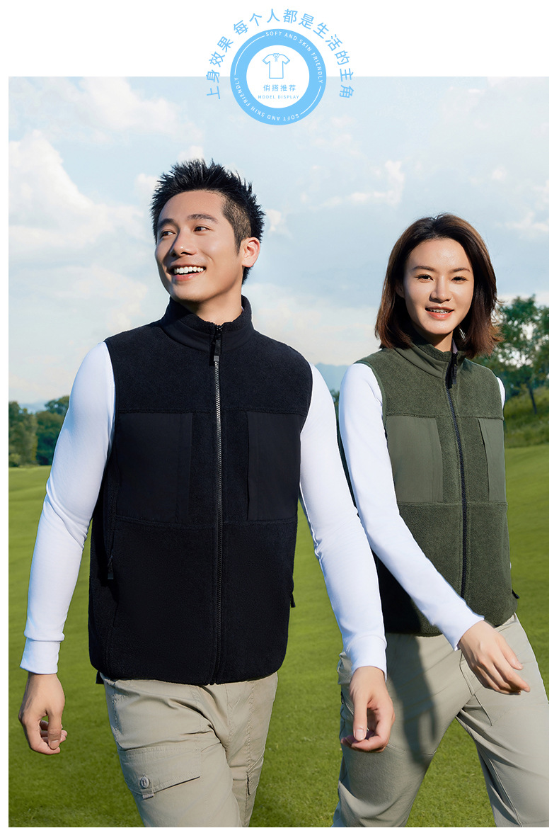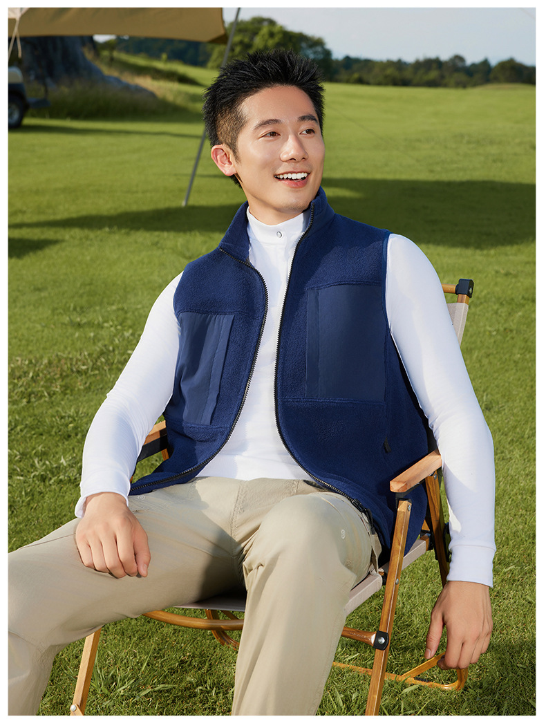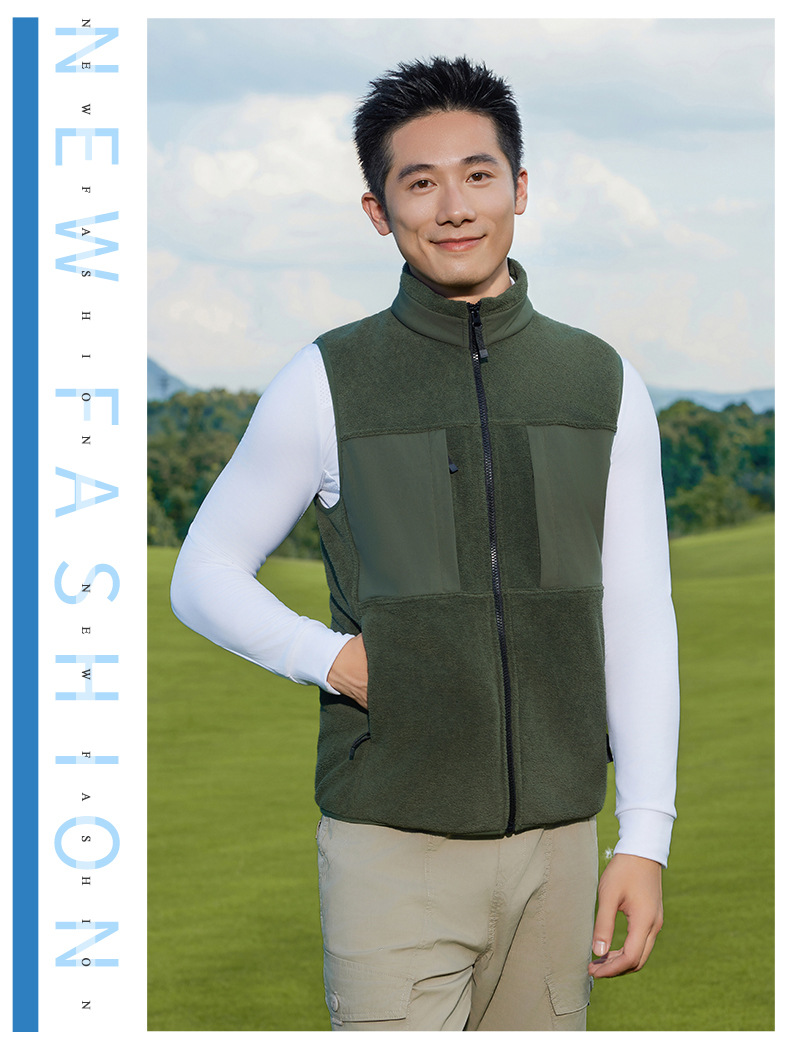 Chaleco de punto de cuello alto de terciopelo integrado de doble cara antiestático marca de moda para hombres con sentido avanzado más chaleco grueso de terciopelo personalizado