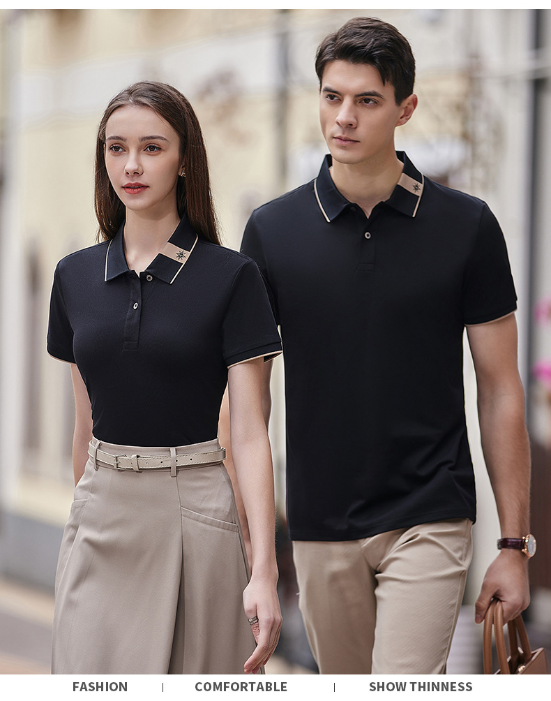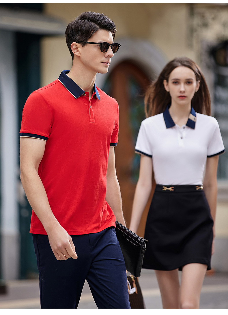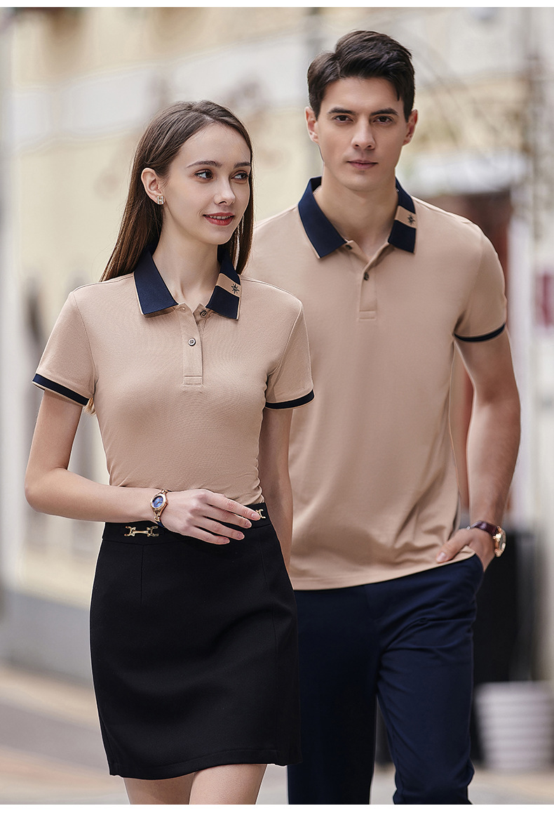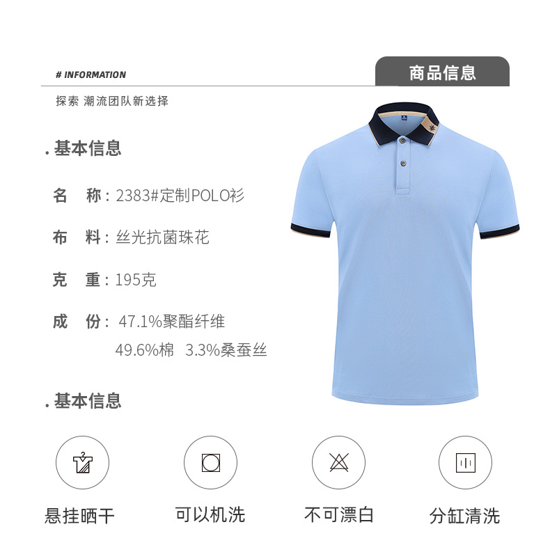Camiseta de seda de morera con solapa, ropa de trabajo, camiseta cultural corporativa, camiseta de manga corta, bordado personalizado