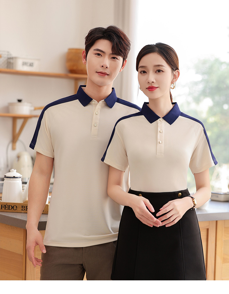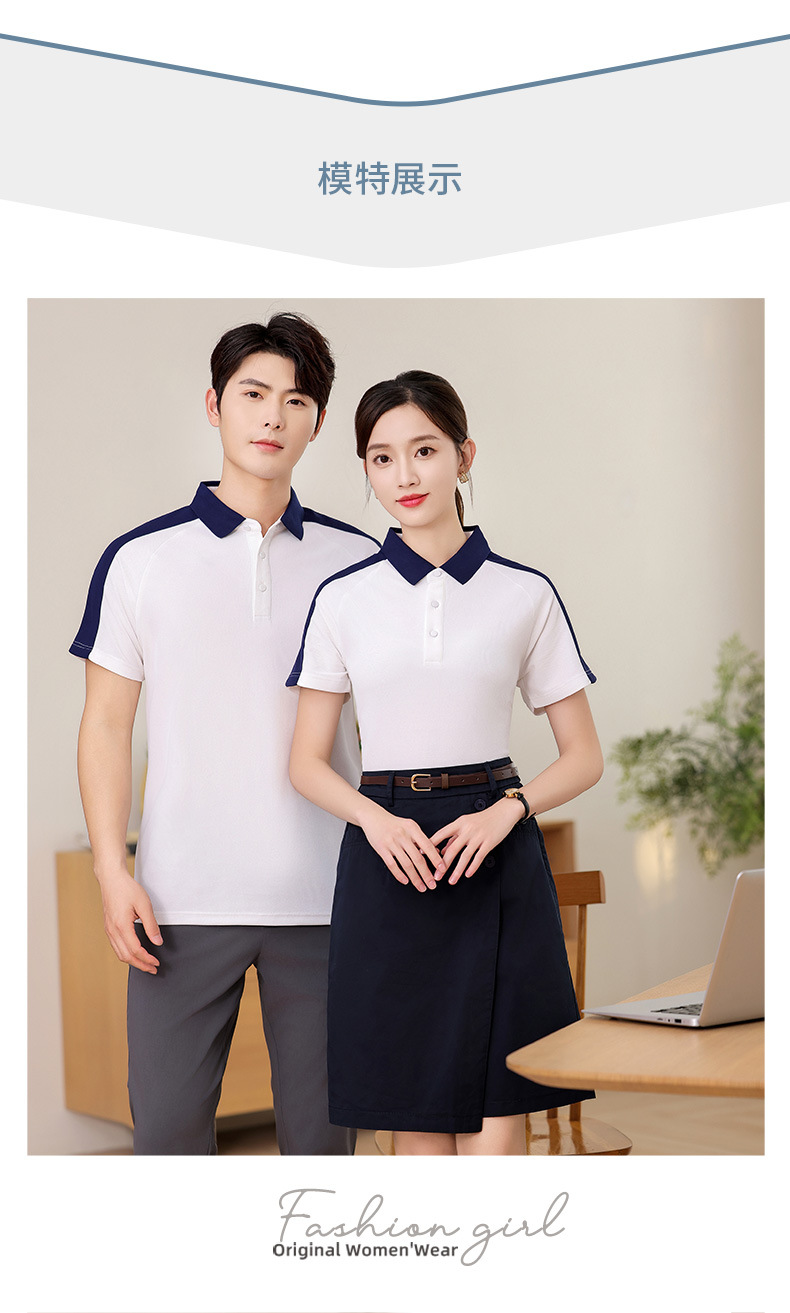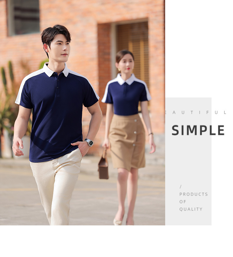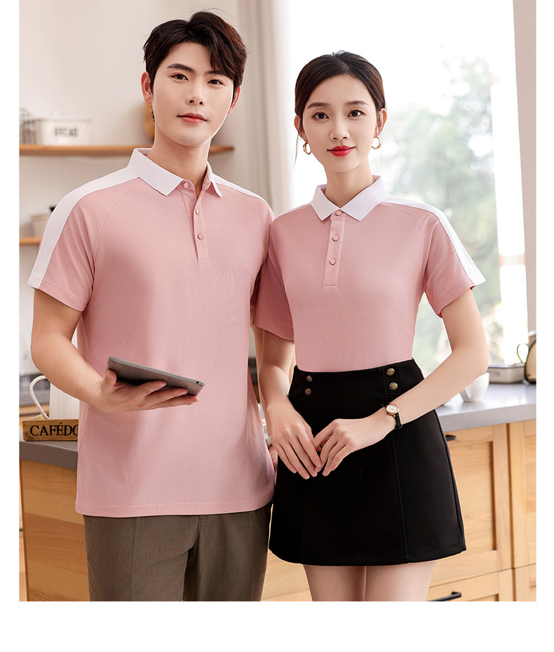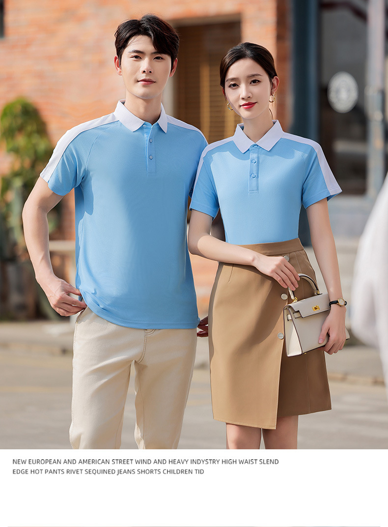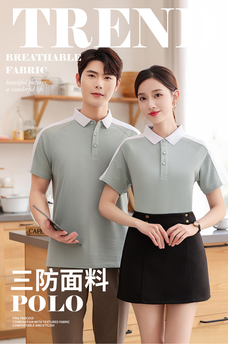 A prueba de agua, anti-gasa, anti-incrustación, solapa de manga corta, ropa de trabajo, camiseta de impresión de equipo, logotipo personalizado