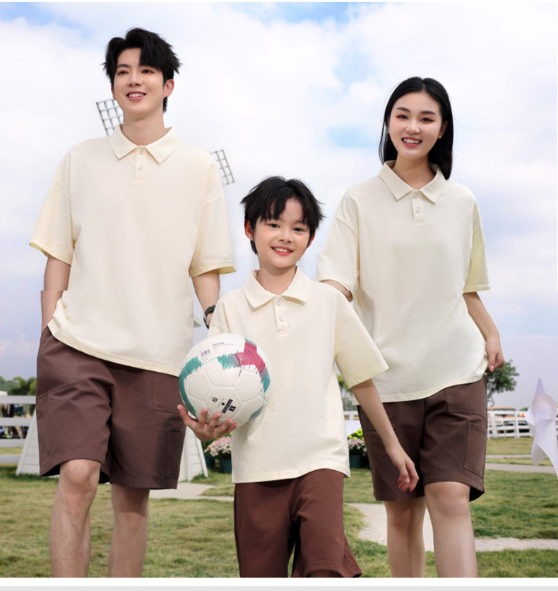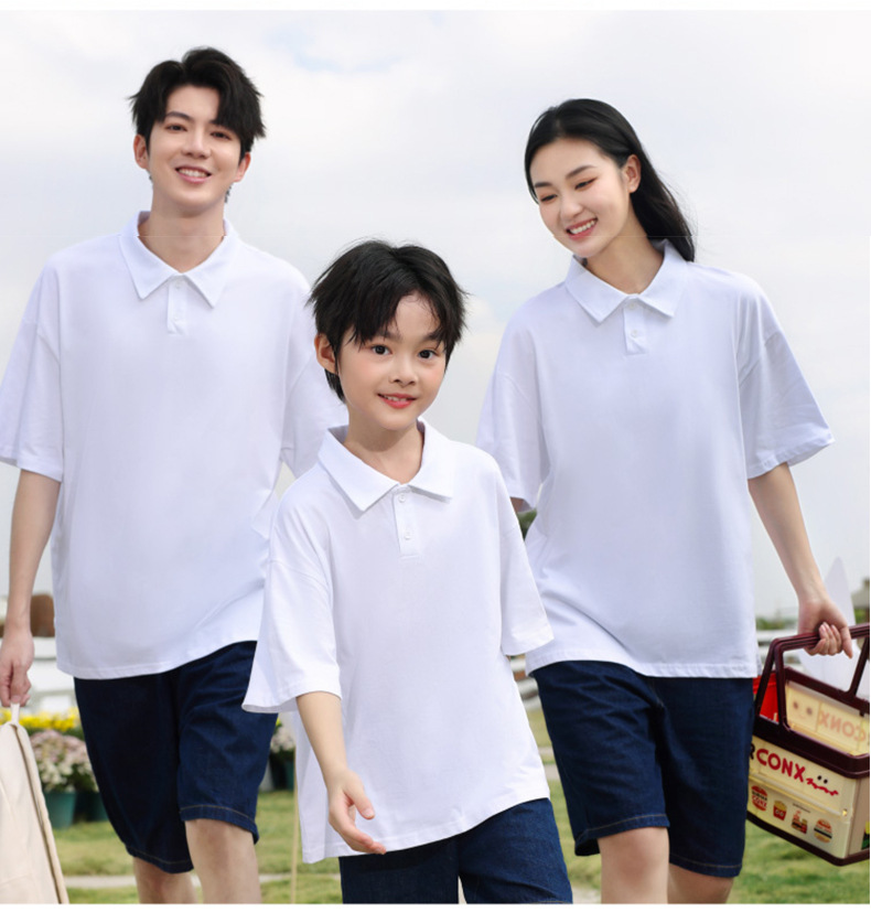 Campamento de verano de algodón de hombro para padres e hijos ropa de clase camiseta cultural para niños polo camiseta de manga corta con collar camiseta personalizada