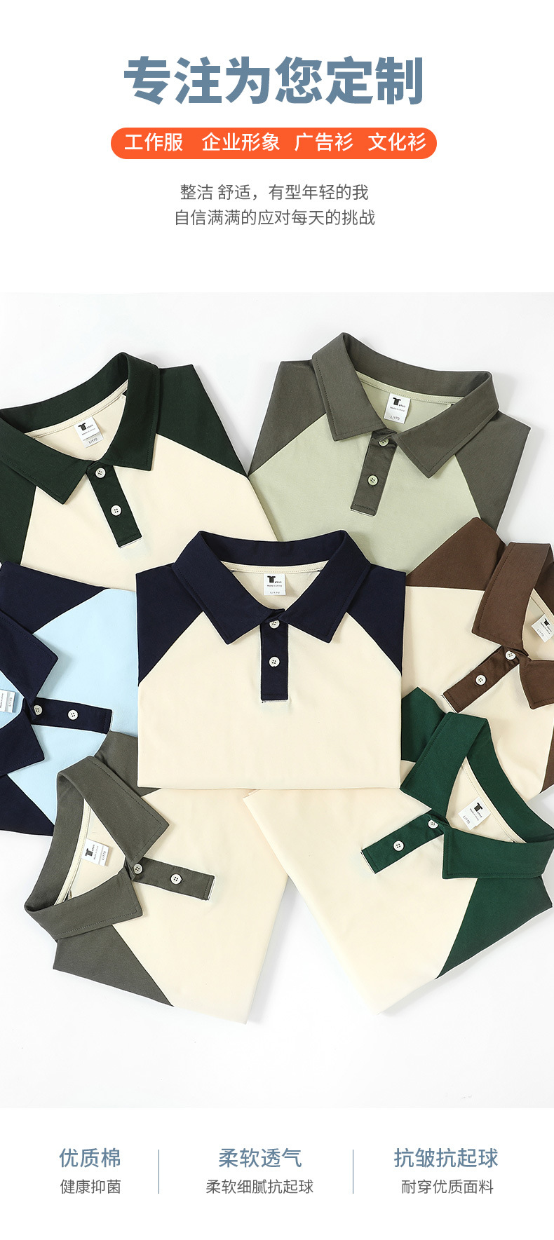 Camiseta de media manga con hombros caídos de algodón puro, polo de solapa raglán, ropa de clase de marca de moda, camisas publicitarias, ropa de trabajo, camisas culturales, personalización