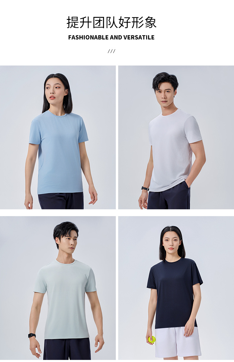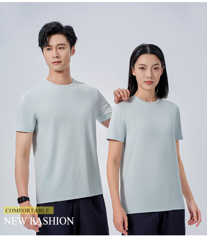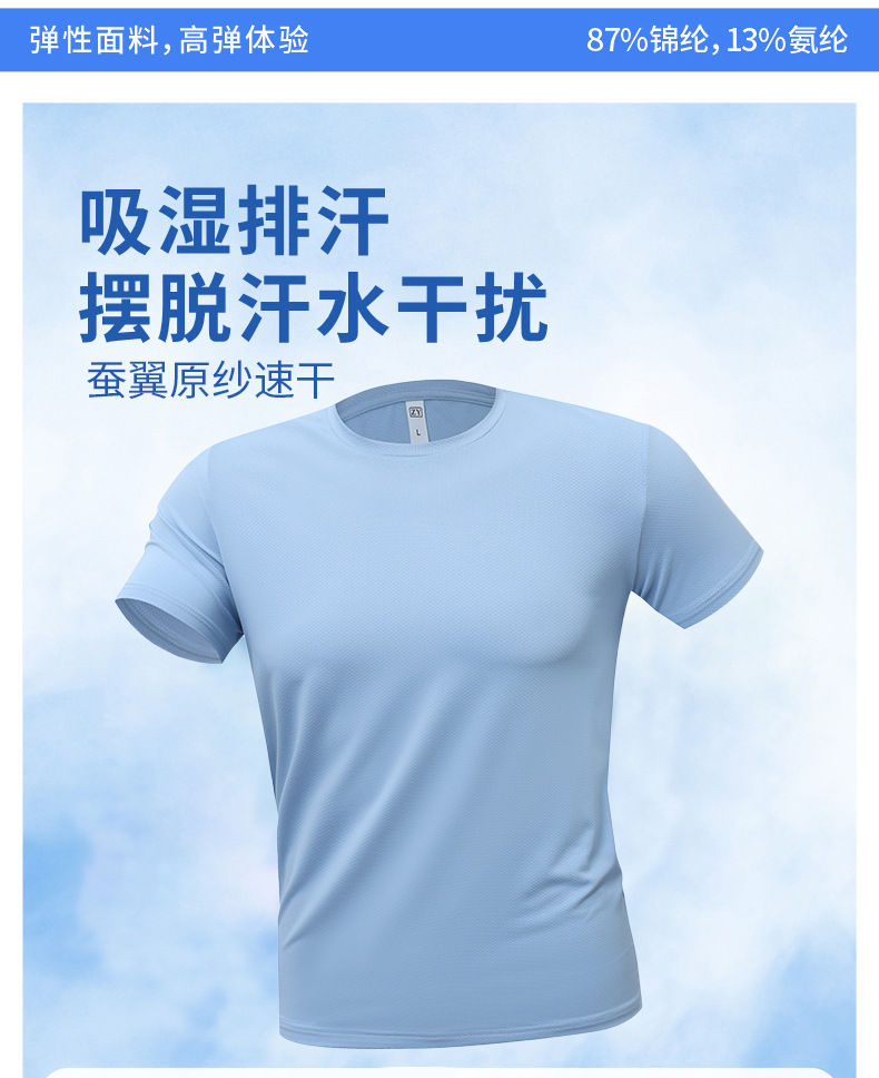 Poliamonio elástico absorción de sudor ligero cuello redondo ropa de trabajo de manga corta camiseta de publicidad cultural de construcción rápida camiseta de secado personalizada