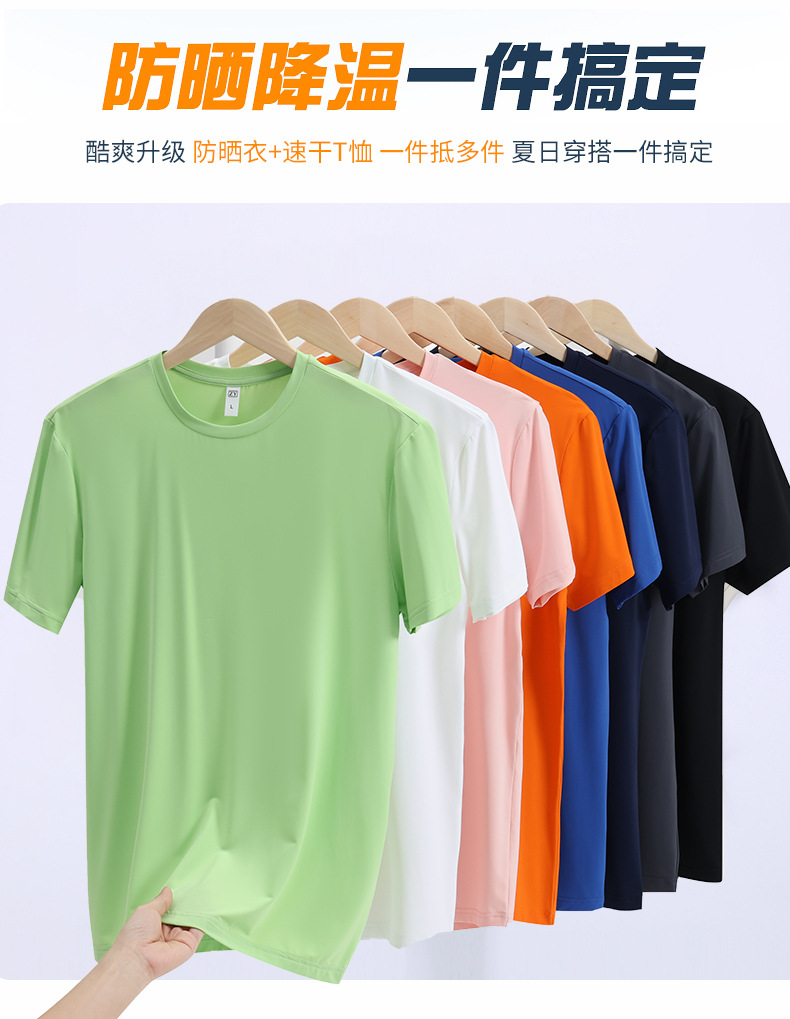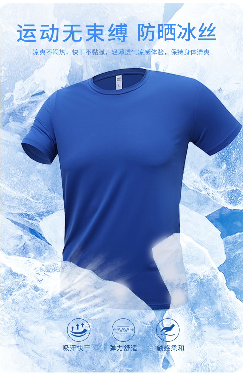 Deportes de alta gama protector solar sudor de manga corta de verano camiseta de seda de hielo ropa de trabajo deportiva de secado rápido camiseta de cuello redondo personalizada