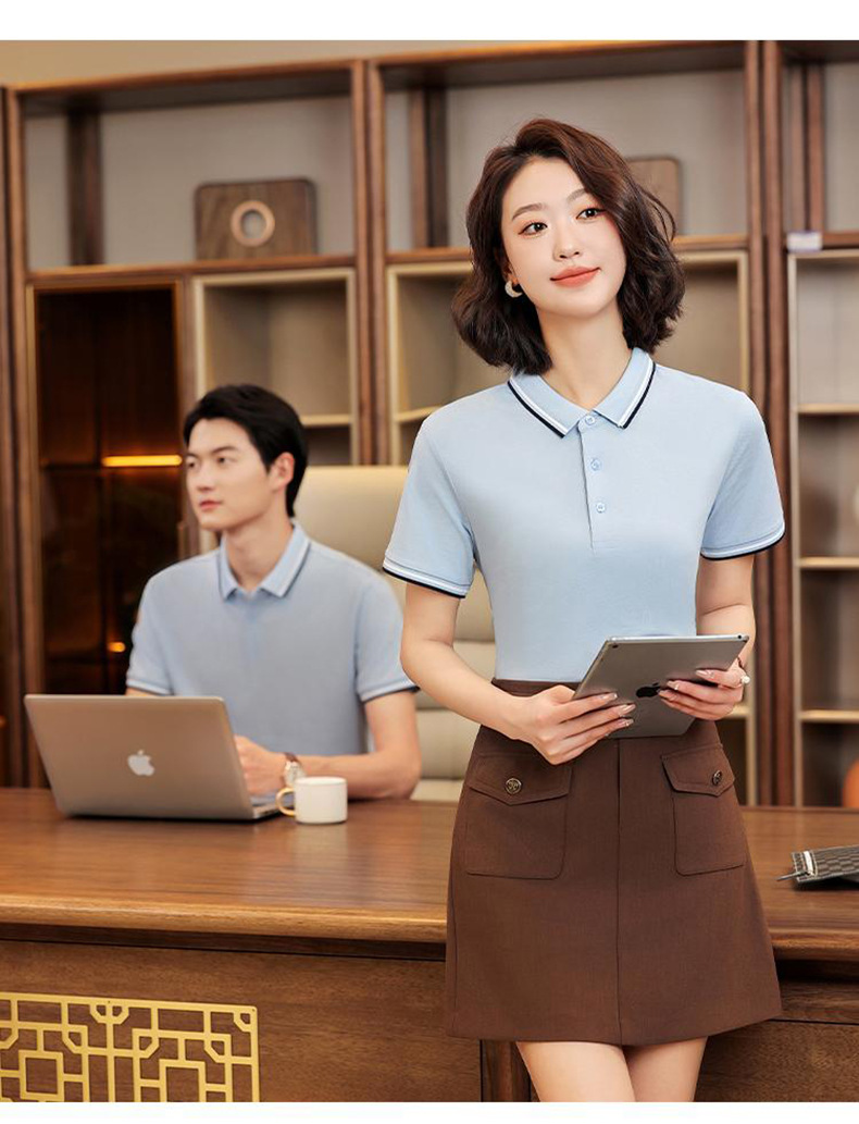Anti-áccaros anti-bactérias 5A algodón vestido de trabajo de manga corta con solapa ropa de grupo camiseta cultural camiseta polo impresión personalizada ropa de trabajo