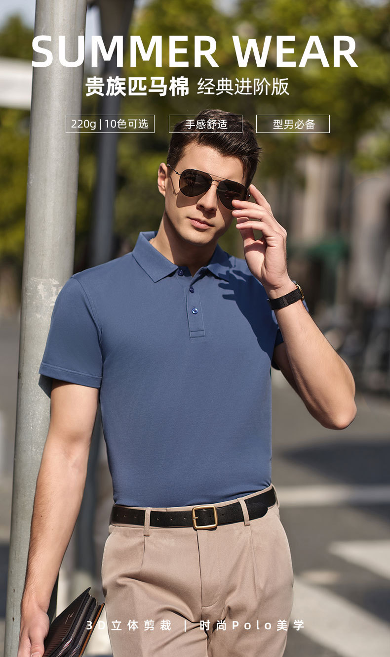 Polo de manga corta de algodón Pima de alta gama con solapa de negocios, polo de algodón para hombre, ropa de trabajo personalizada.