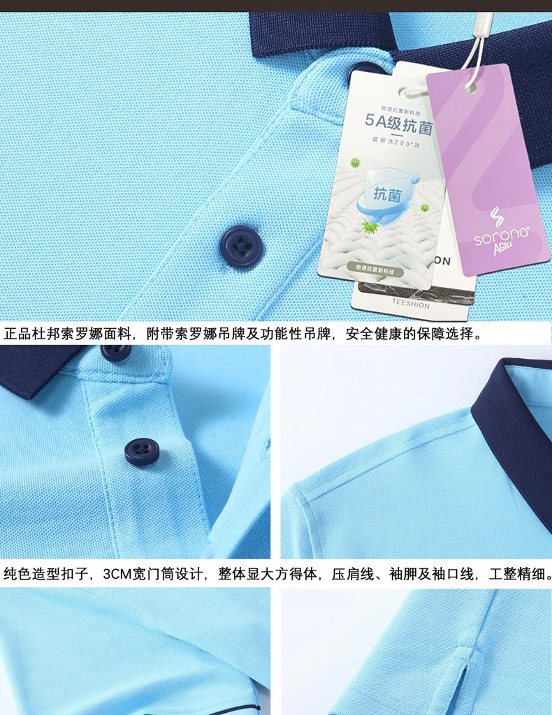 Camiseta de manga corta con cuello, antibacteriana y refrescante, con bloques de color Sorona, polo de verano de alta gama para hombre, con impresión de logotipo personalizado