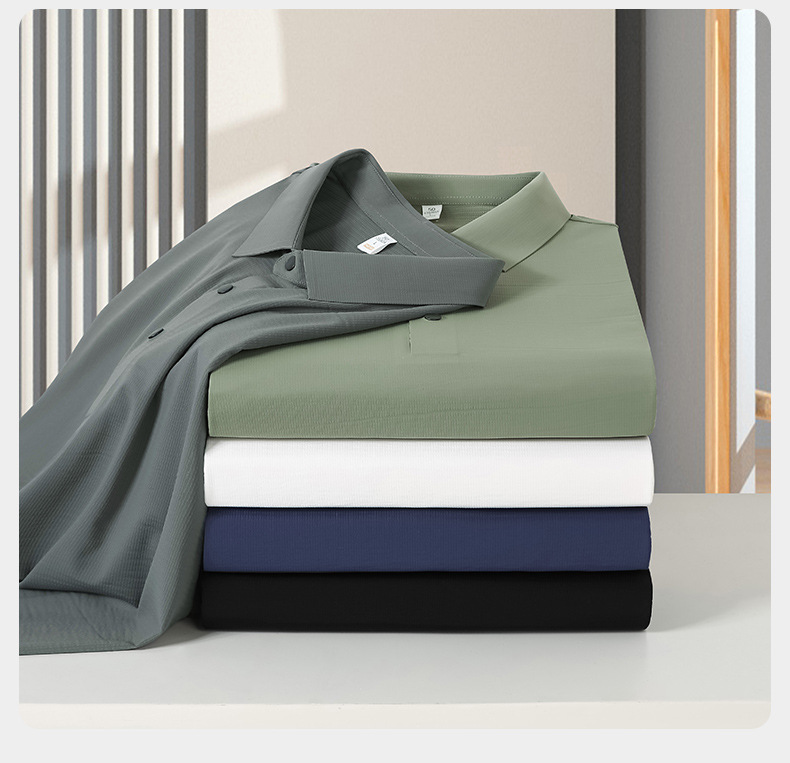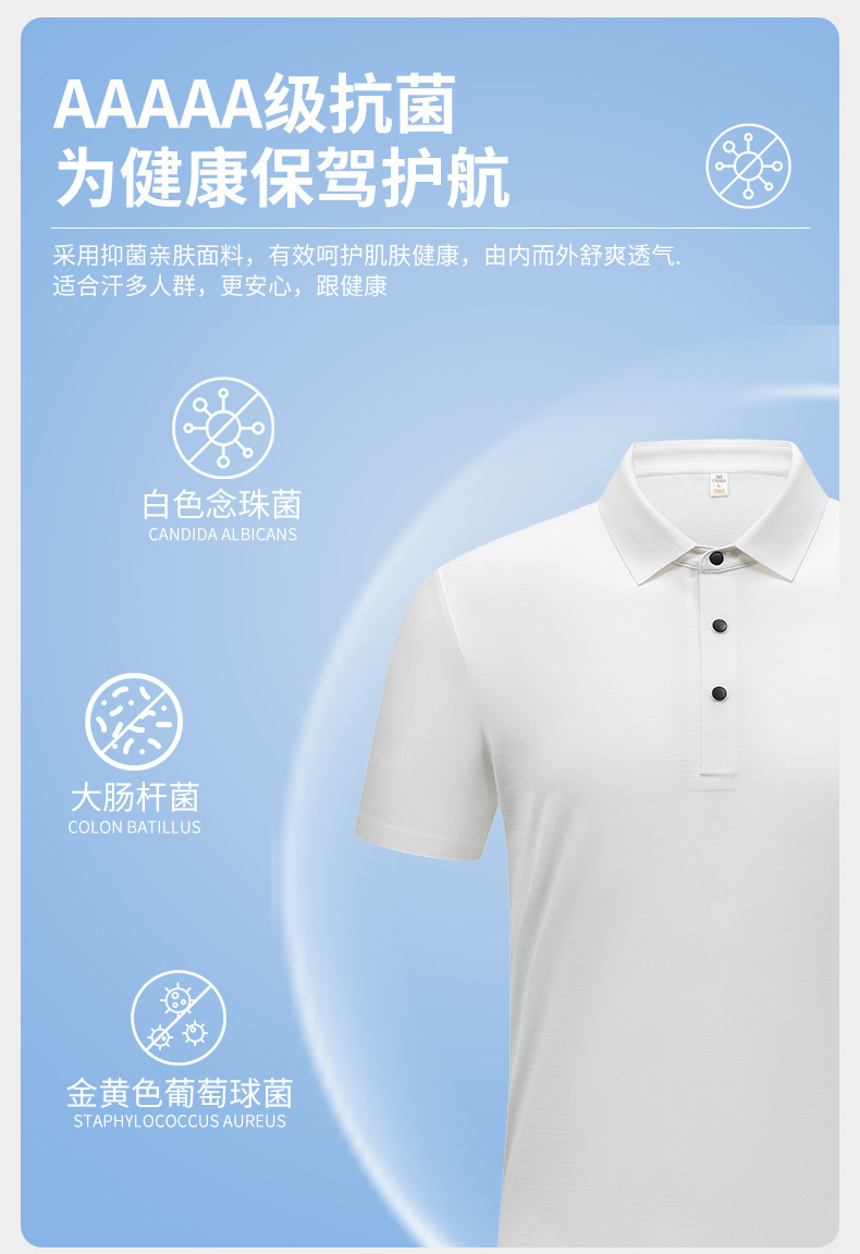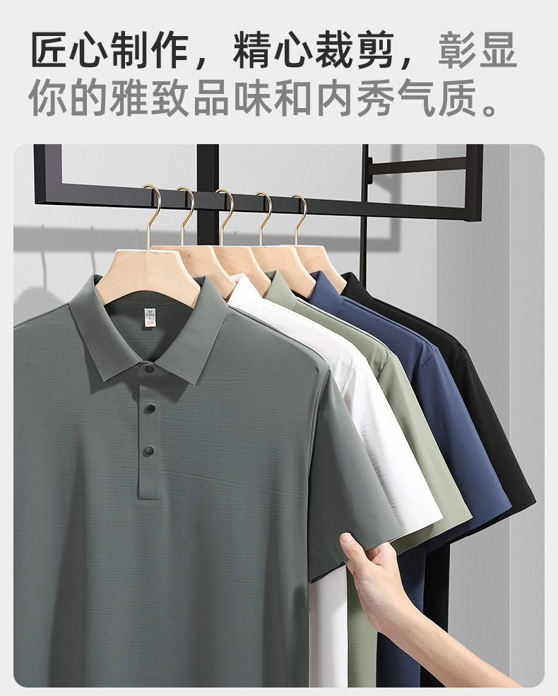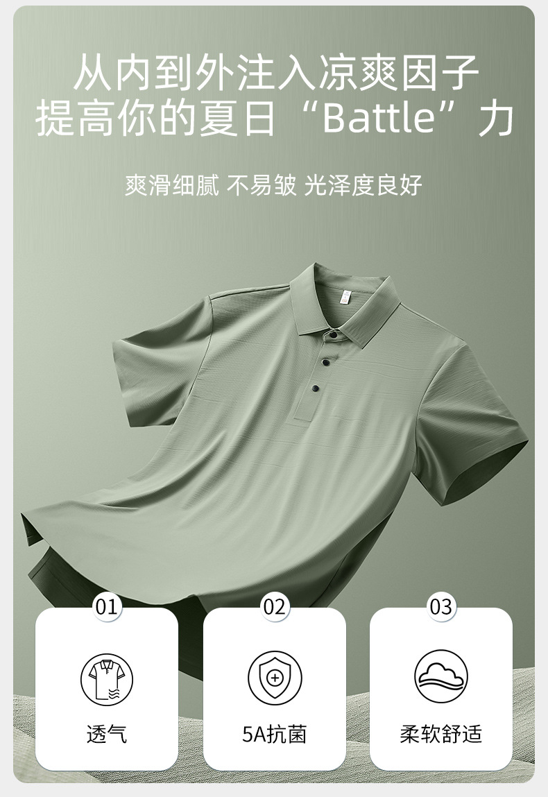 Sudor-wicking ligero sensible al hielo de secado rápido 5A antibacteriano de gama alta de manga corta Camiseta de cuello polo de los hombres logotipo personalizado