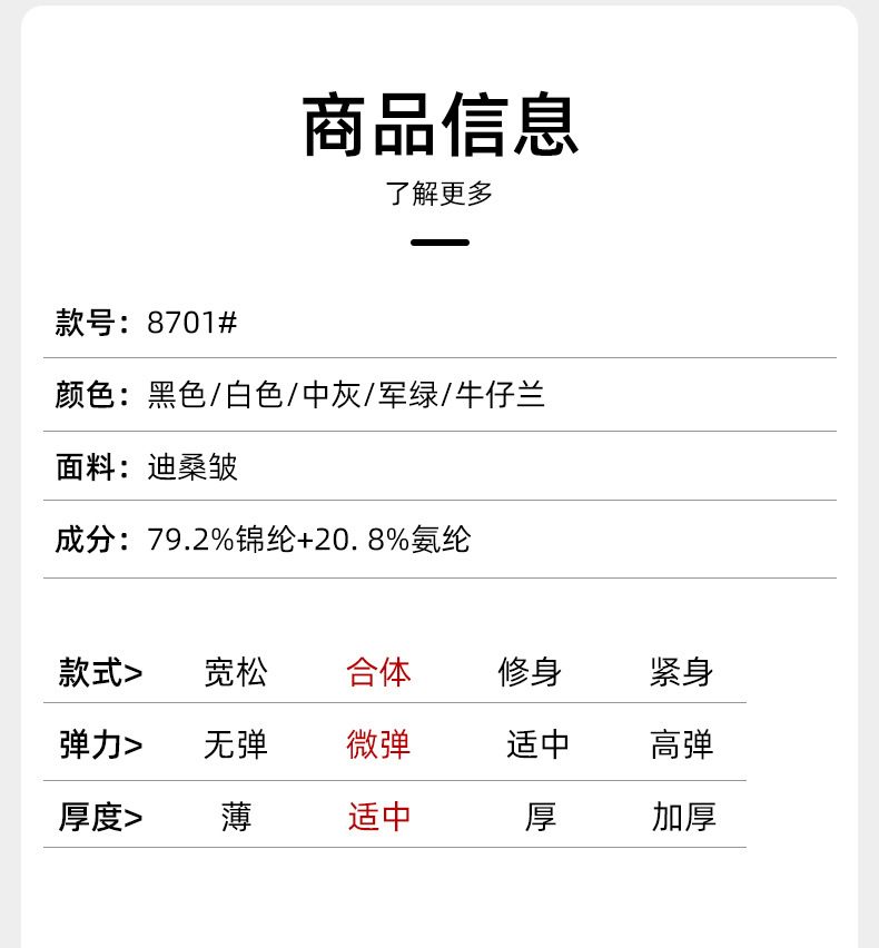 | Color | Blanco,Gris medio,Negro,Verde Ejército,Azul Denim |