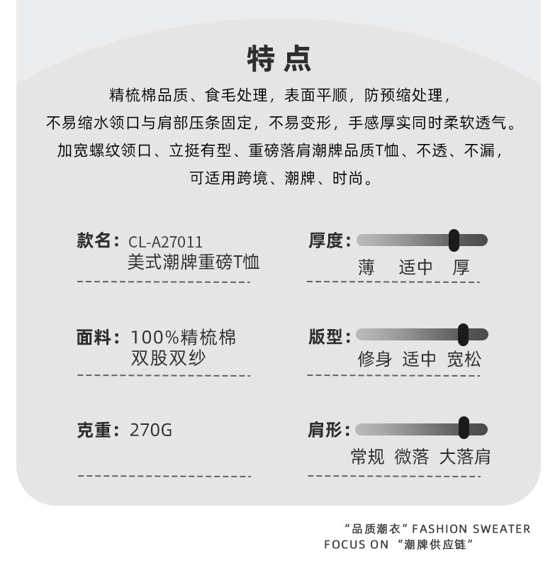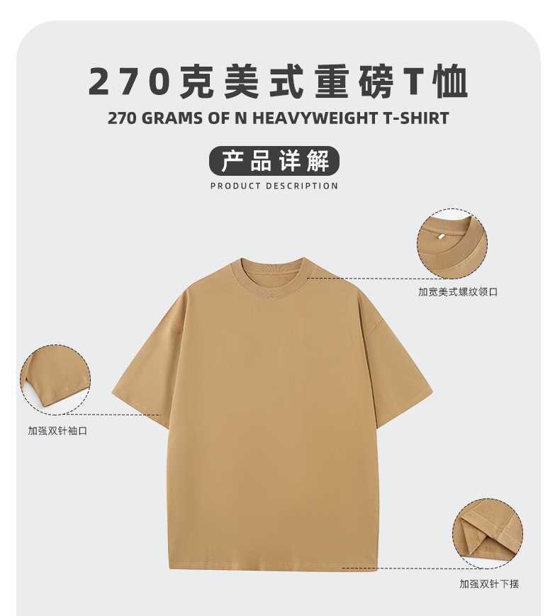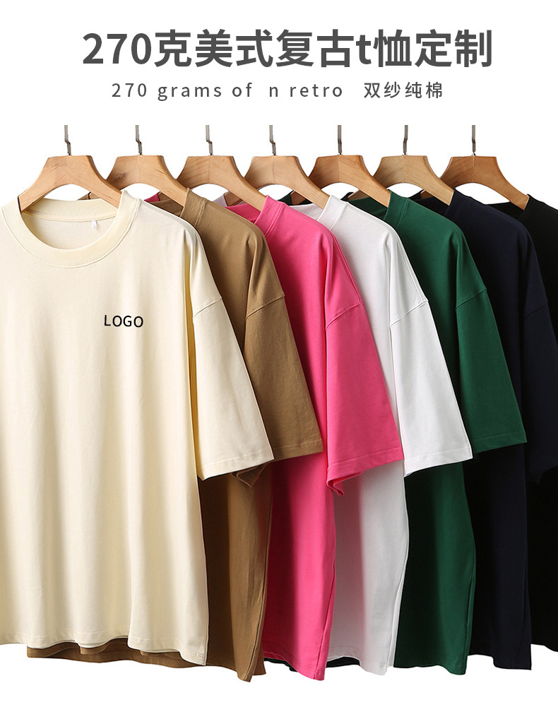 270 gramos de algodón pesado, camiseta de manga corta personalizada, ropa de trabajo de grupo suelta, ropa de clase, logotipo personalizado