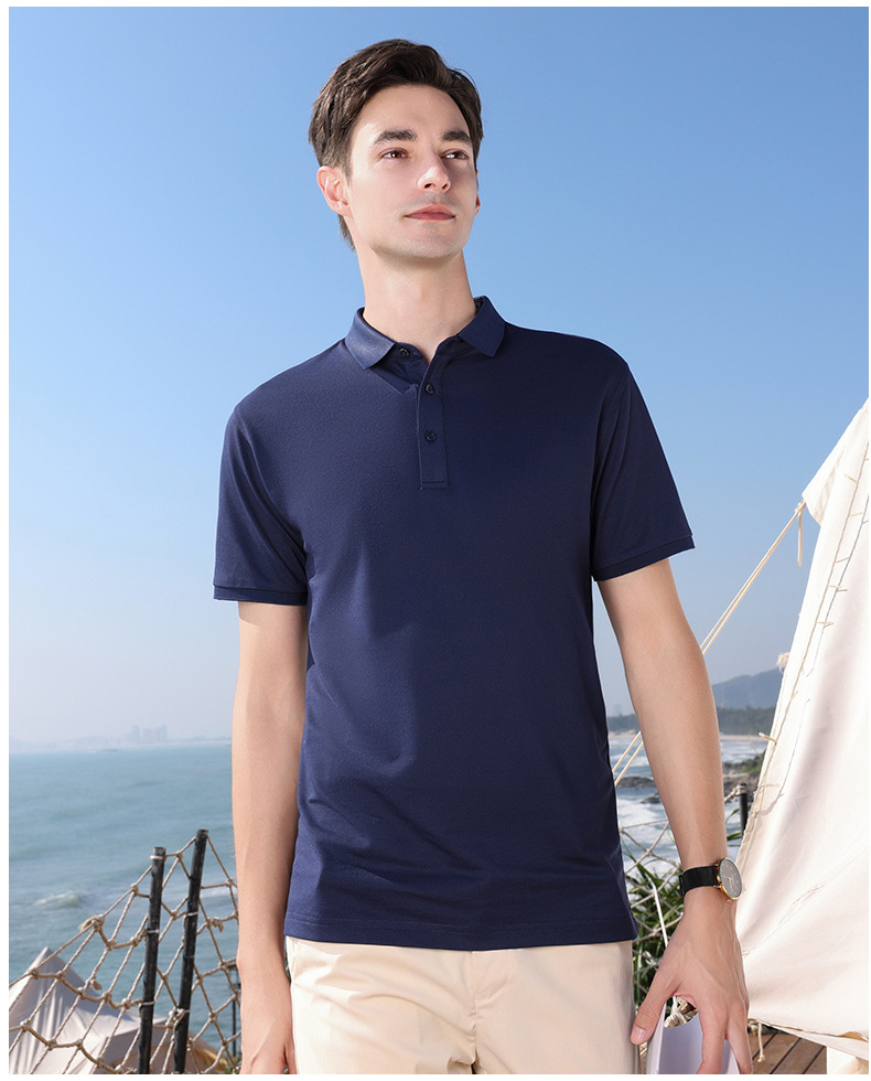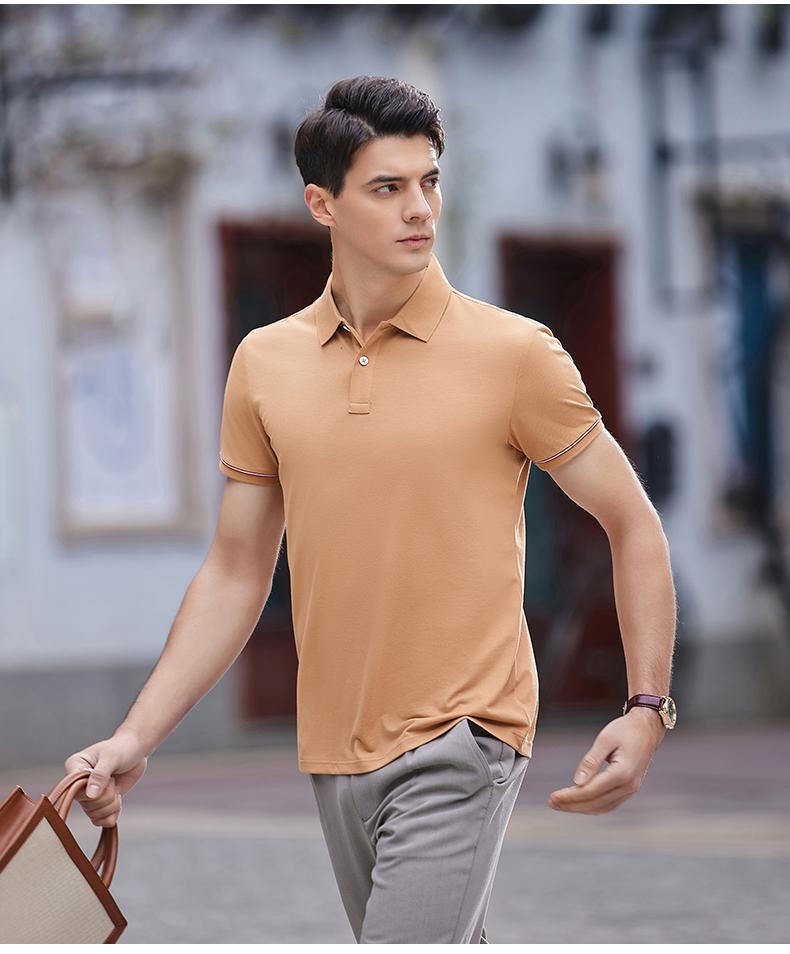 De gama alta 5A antibacteriano suave transpirable durable hombres de verano solapa de manga corta de color sólido de seda de morera Polo personalización