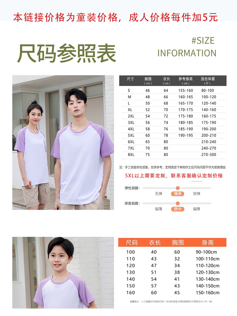 200g manga raglán refrescante Campamento de Verano transpirable jardín de infantes clase deportiva padre-hijo uniforme de algodón puro camiseta infantil personalización