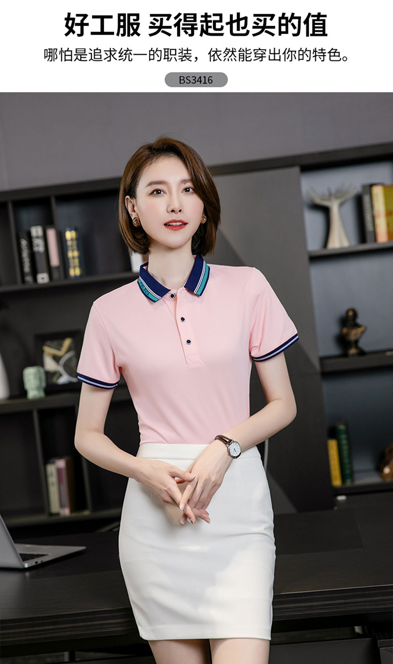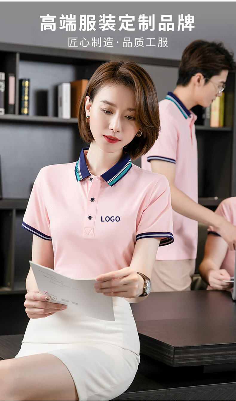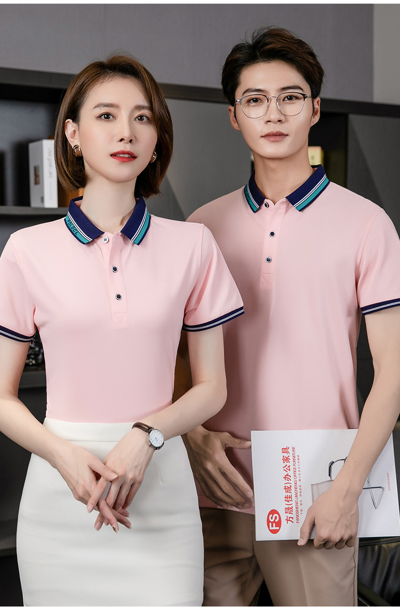 De gama alta de 180g cuello de segundo nivel fresco suave delicado solapa de seda de hielo ropa de trabajo de manga corta Polo personalización de la camisa