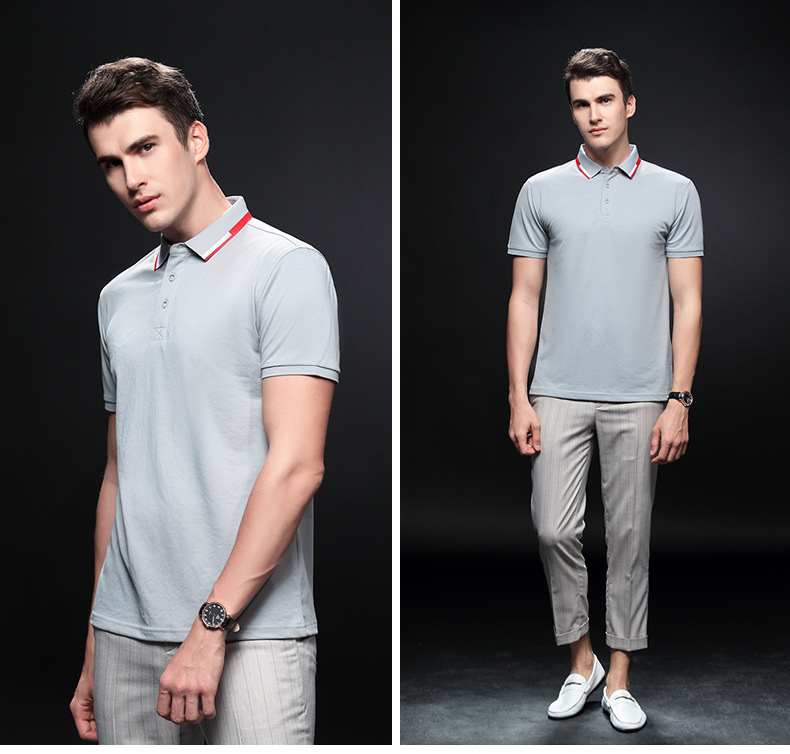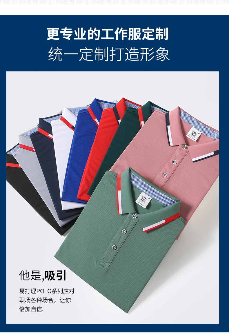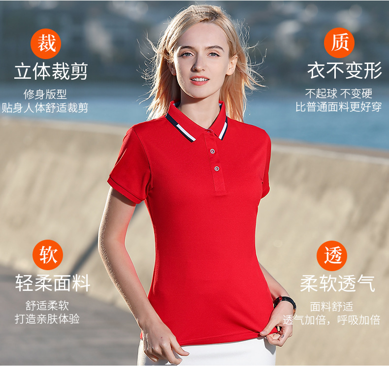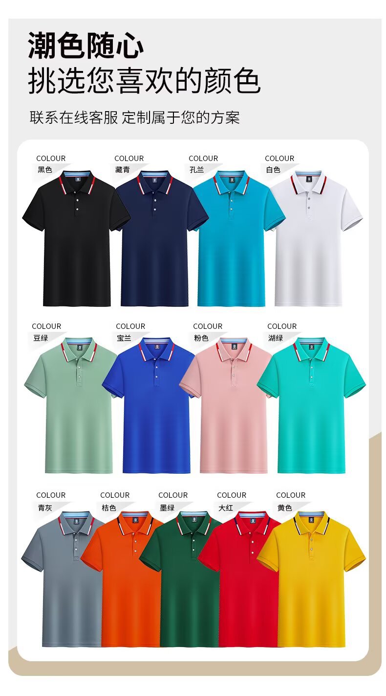 Seda de hielo sensación fría, lavado a máquina, sin deformación, solapa de manga corta, ropa de clase, camisas publicitarias, ropa de trabajo, camisas de polo, ropa de trabajo, logotipo personalizado