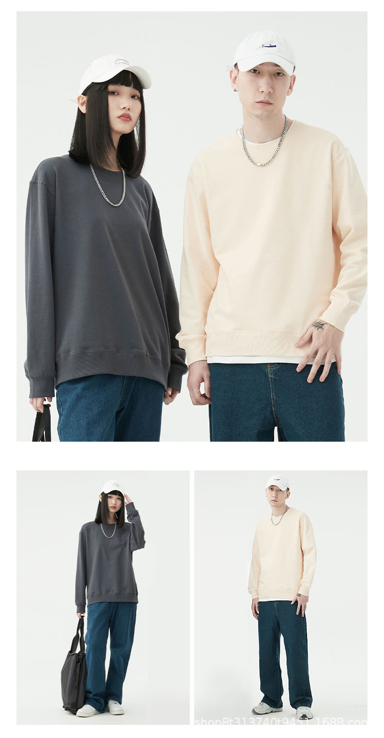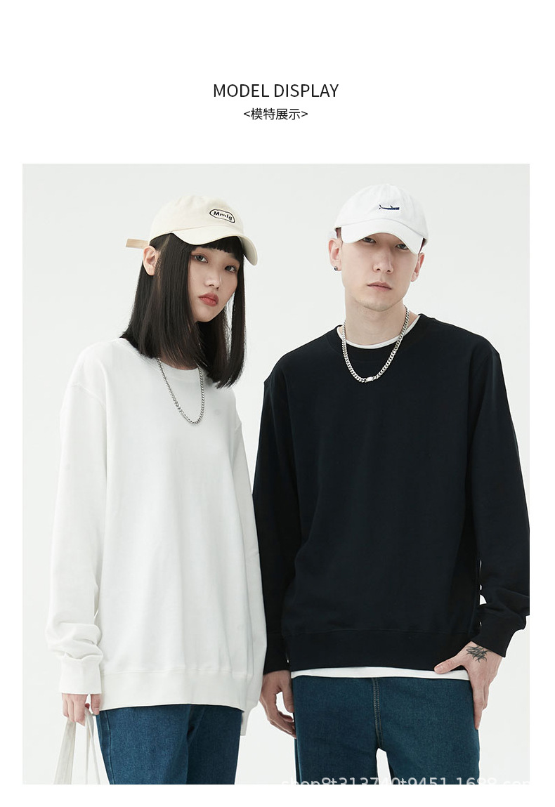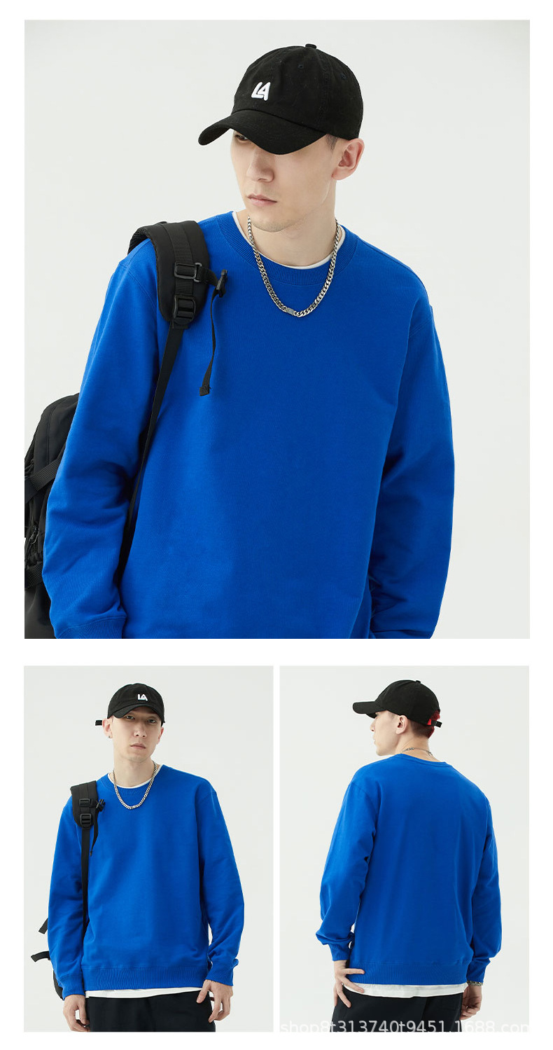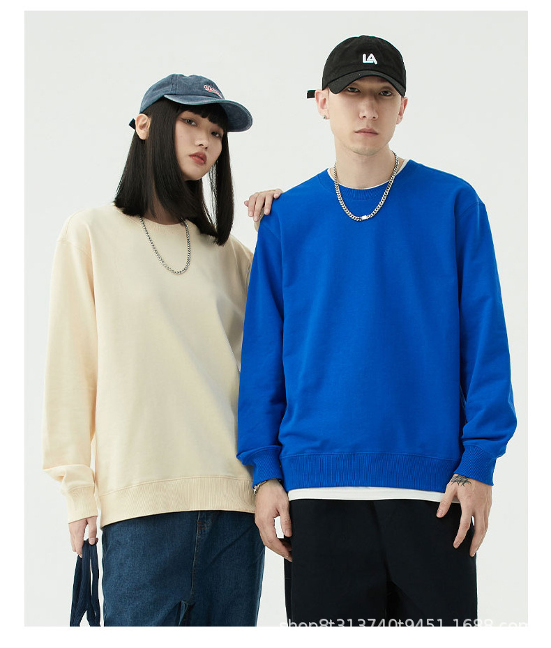 Chaqueta de manga larga con cuello redondo de rizo para otoño e invierno, de algodón puro, sin formación de bolitas, con hombros caídos, camisa publicitaria, ropa de trabajo, sudadera con impresión de logotipo personalizado.