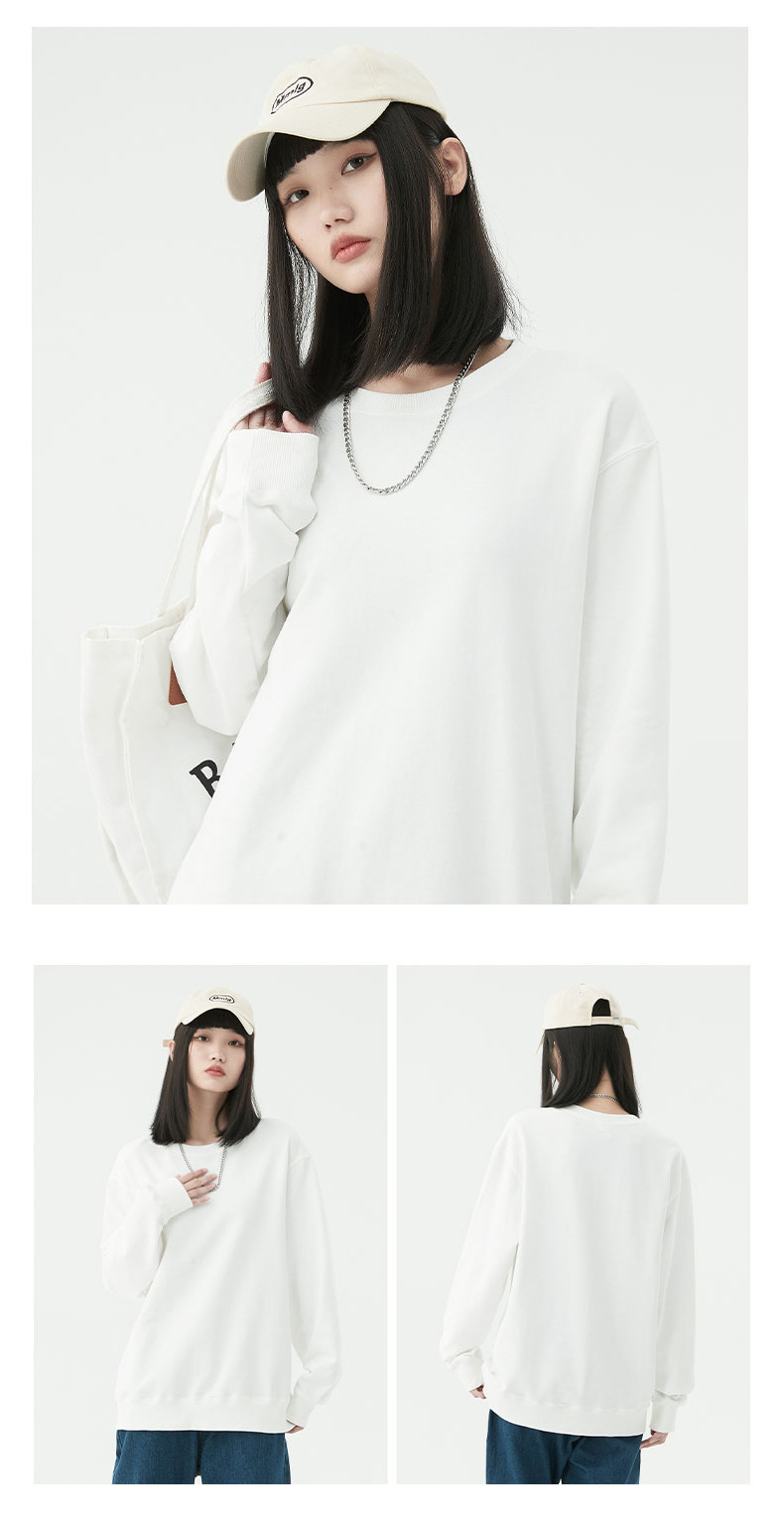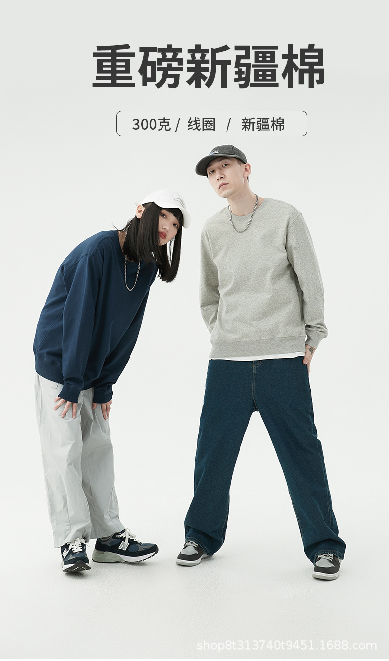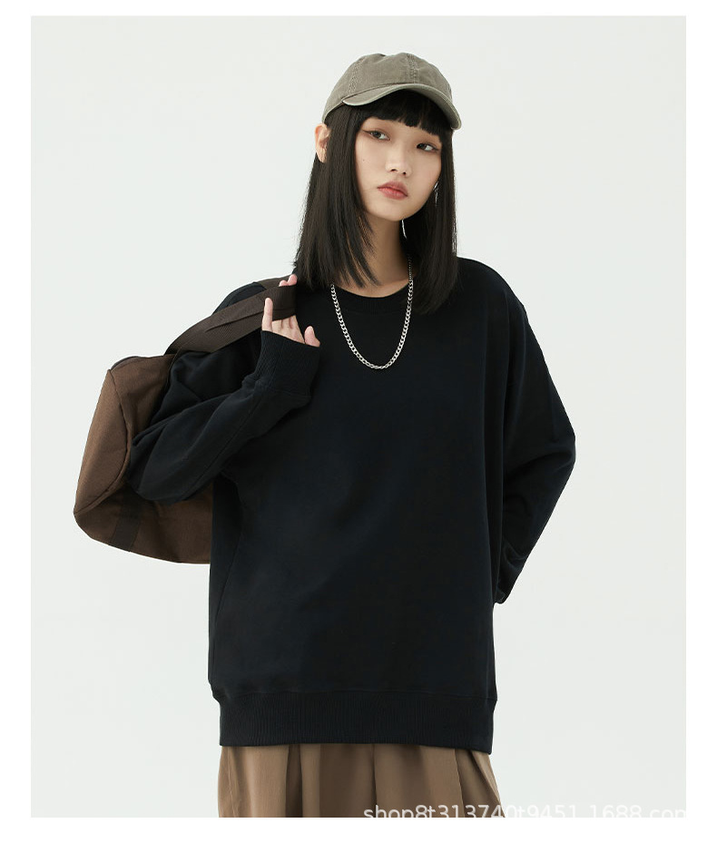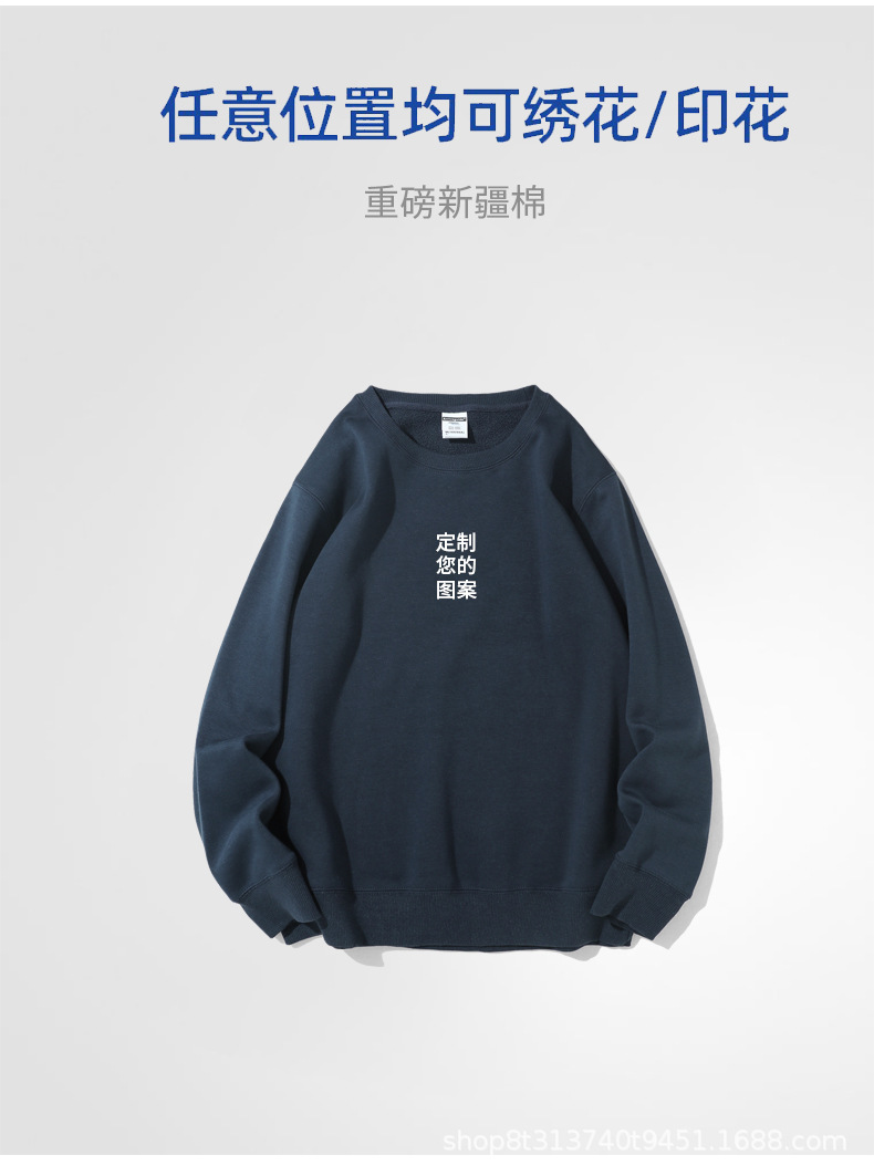 Chaqueta de manga larga con cuello redondo de rizo para otoño e invierno, de algodón puro, sin formación de bolitas, con hombros caídos, camisa publicitaria, ropa de trabajo, sudadera con impresión de logotipo personalizado.
