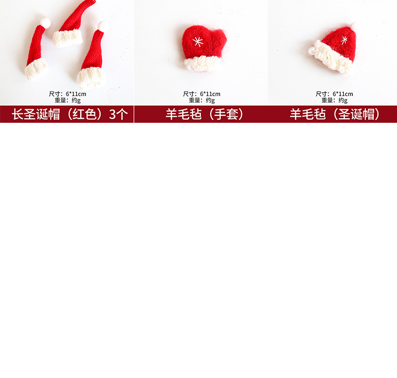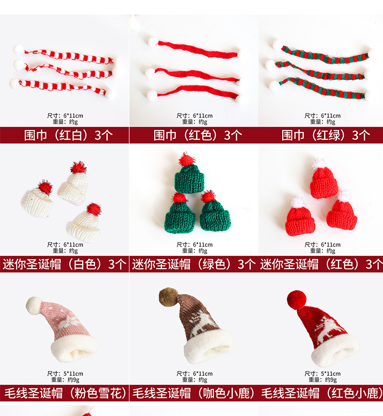 | Color | Sombrero de Navidad de lana (calo de nieve rosa), Sombrero de Navidad de lana (cervo curry), Sombrero de Navidad de lana (rayas rojas y verdes), Mini Sombrero de Navidad (blanco) 3, Mini Sombrero de Navidad (rojo), Mini Sombrero de Navidad (verde) 3, Sombrero de Navidad largo (rojo), Bufandas (rojo) 3, Bufandas (rojo) 3, Bufandas (rojo) 3, Feltro (guante), Sombrero de Navidad de onda rosa, Cordón de feltro, Cereza Pequeña (Vina Roja) 2 |